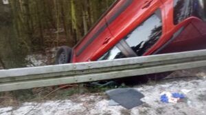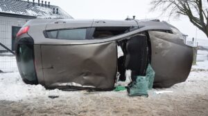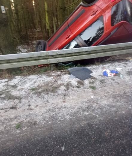 Kobieta dachowała na łuku drogi – trafiła do szpitala