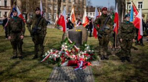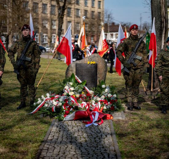 Kwiaty pod obeliskiem Karoliny Juszczykowskiej w Tomaszowie Mazowieckim w Narodowym Dniu Pamięci Polaków ratujących Żydów pod okupacją niemiecką