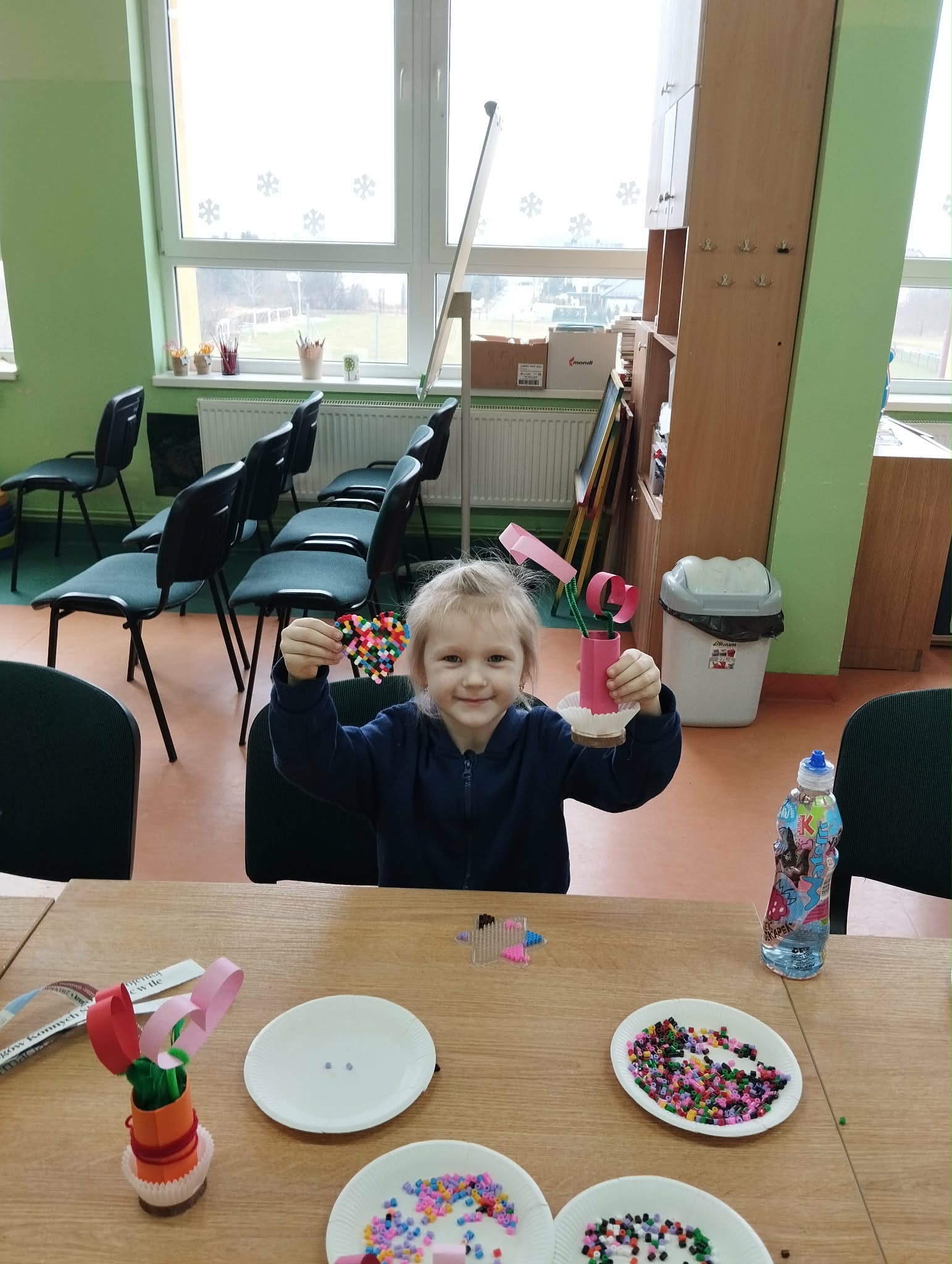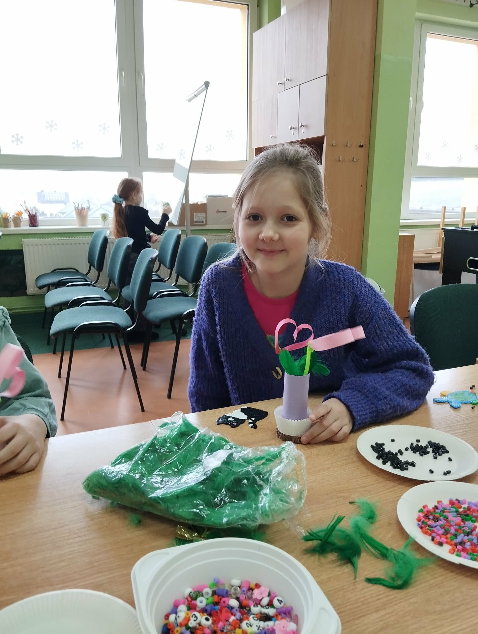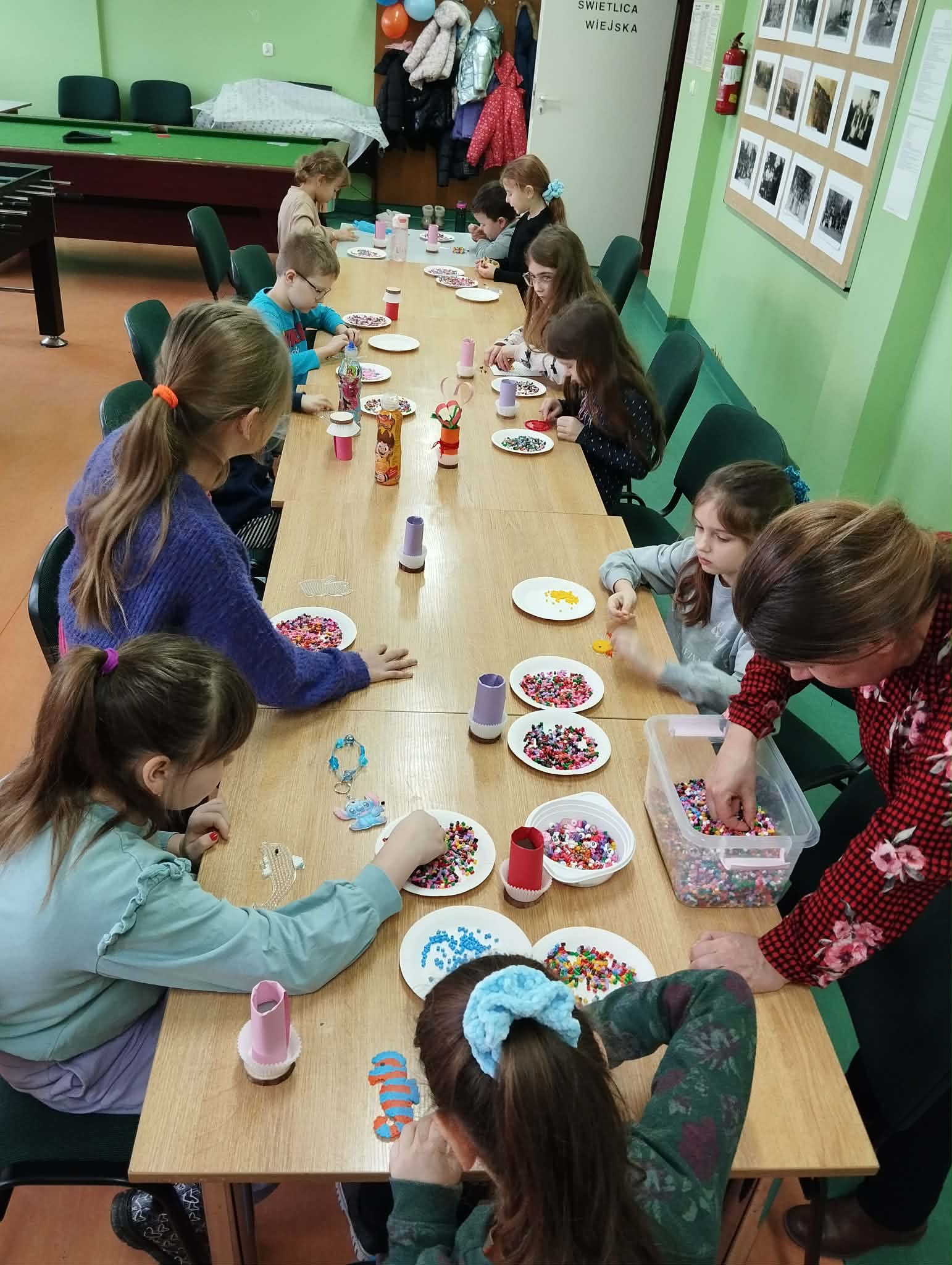 Ostatni – sobotni dzień artystycznych ferii minął w Gminnej Bibliotece Publicznej w Lgocie Wielkiej pod hasłem koralików i walentynkowych serduszek.