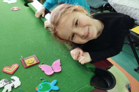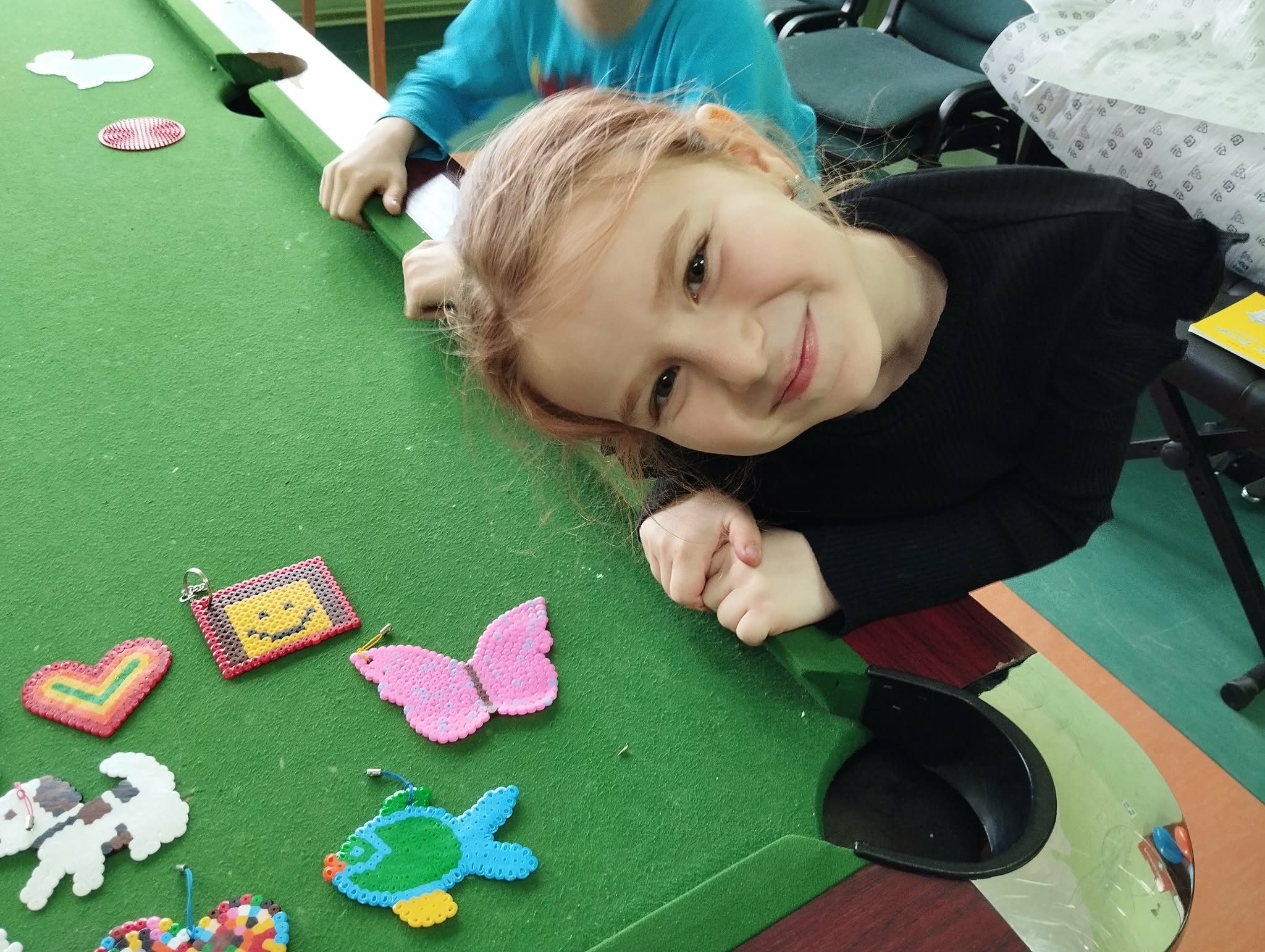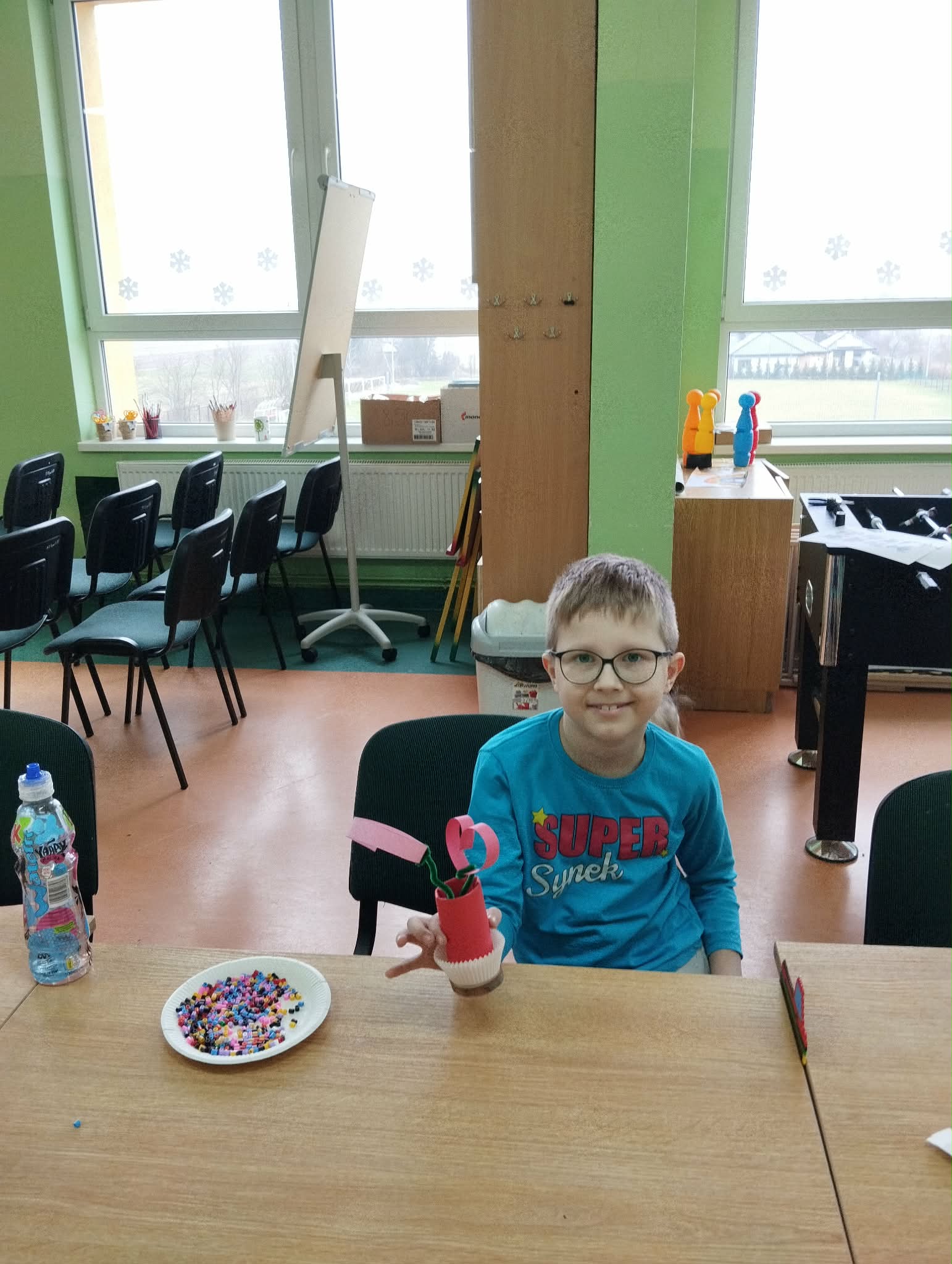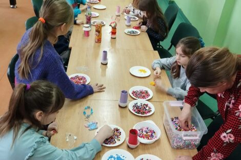 Ostatni – sobotni dzień artystycznych ferii minął w Gminnej Bibliotece Publicznej w Lgocie Wielkiej pod hasłem koralików i walentynkowych serduszek.