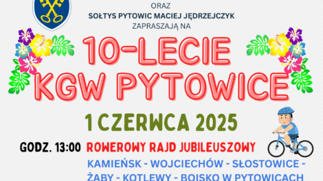 W niedzielę, 1 czerwca 2025 roku, odbędą się obchody 10-lecia Koła Gospodyń Wiejskich w Pytowicach. Wydarzenie organizowane jest przez burmistrza...