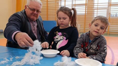 W pierzawce, czyli darciu pierza uczestniczyły dzieci z Przedszkola Samorządowego w Lgocie Wielkiej, zaprosił Klub Seniora z Brudzic