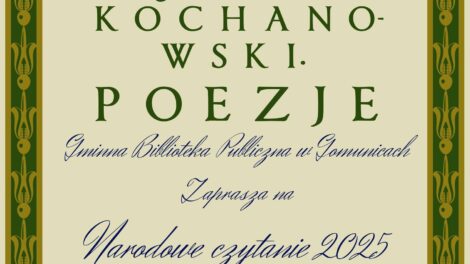 Gminna Biblioteka Publiczna w Gomunicach z okazji tegorocznej edycji Narodowego Czytania otrzymała z Kancelarii Prezydenta RP wyjątkową pieczęć...