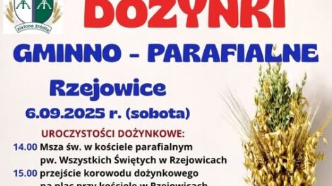 Gmina Kodrąb zaprasza na Dożynki Gminno-Parafialne, które odbędą się w sobotę, 6 września 2025 roku w Rzejowicach. Program uroczystości dożynkowych:...