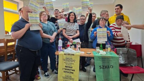 Spotkanie w Środowiskowym Domu Samopomocy w Krępie w gminie Lgota Wielka dotyczące segregowania odpadów