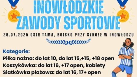 Już 26 lipca 2025 roku na terenie OSiR Tama oraz boiska przy szkole w Inowłodzu odbędą się Inowłodzkie Zawody Sportowe – pełne emocji, dobrej zabawy...