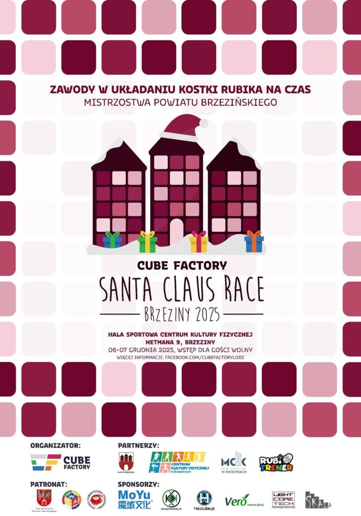 Ekipa Cube Factory zaprasza na tradycyjne już, mikołajkowe zawody w układaniu Rubik’s Cube na czas — podczas wydarzenia wyłoniony zostanie Mistrz Powiatu Brzezińskiego.