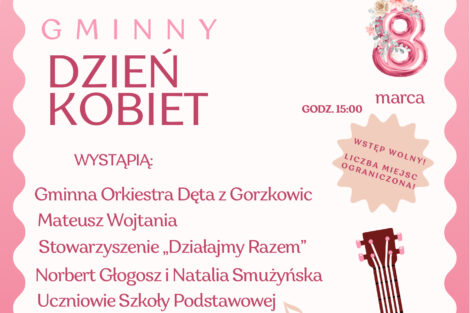 Władze gminy zapraszają, z okazji Dnia Kobiet, wszystkie panie na wyjątkowe wydarzenie pełne muzyki, uśmiechu i dobrej atmosfery. Gminne obchody Dnia Kobiet odbędą się w niedzielę, 8 marca 2026, o godz. 15 w Hali Sportowej przy Szkole Podstawowej w Strzelcach Małych.