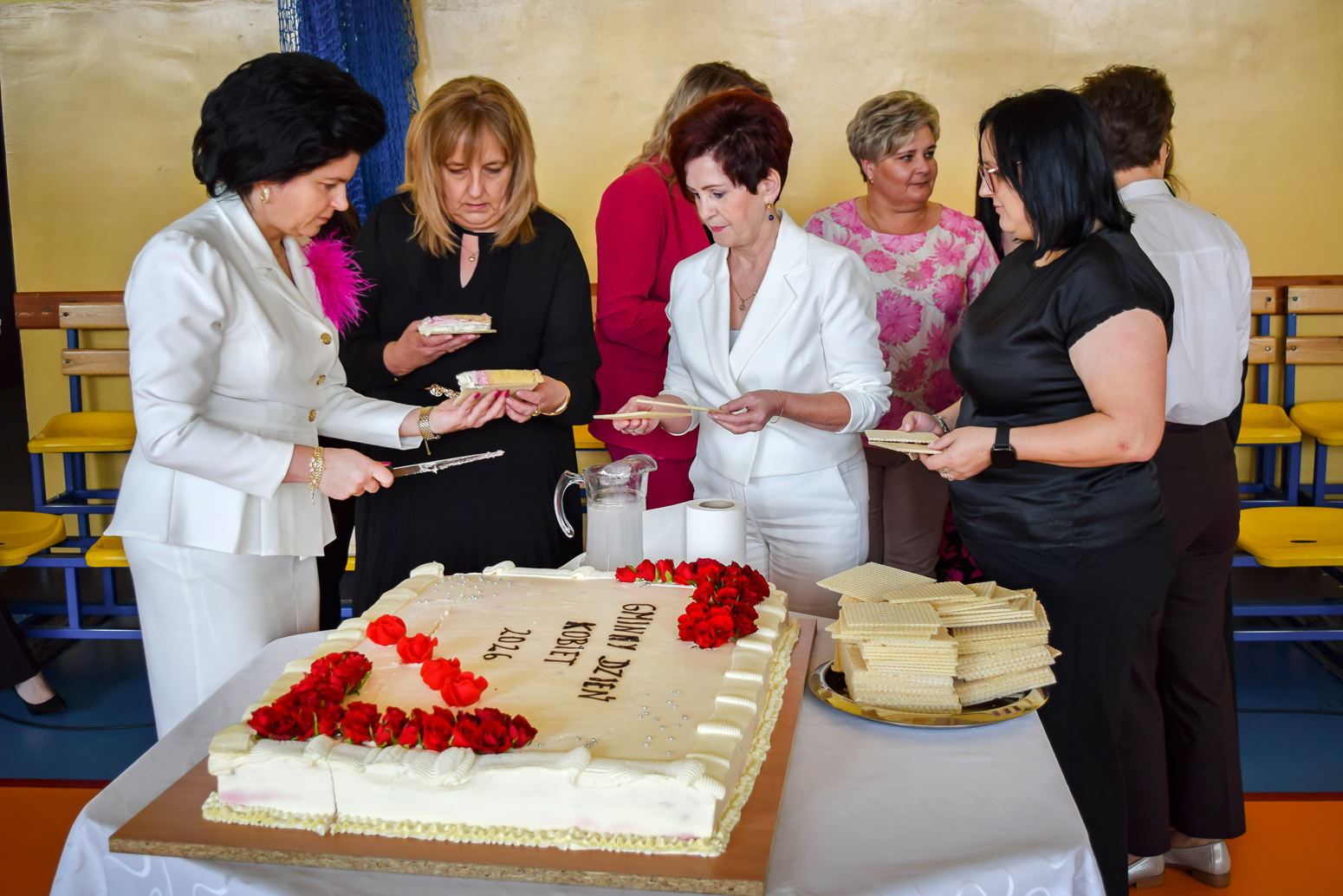 Uroczystość rozpoczęła się od przemówień wójt Edyta Majchrowskiej oraz radnych, którzy złożyli wszystkim paniom najserdeczniejsze życzenia. Panowie wręczyli również słodkie upominki, aby jeszcze bardziej podkreślić wyjątkowość tego dnia. Nie zabrakło także okazałego tortu.