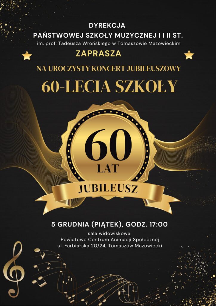 W piątek, 5 grudnia, jubileusz 60-lecia istnienia świętować będzie Państwowa Szkoła Muzyczna I i II stopnia. Wydarzenie rozpocznie się o godz. 17 w Powiatowym Centrum Animacji Społecznej.
