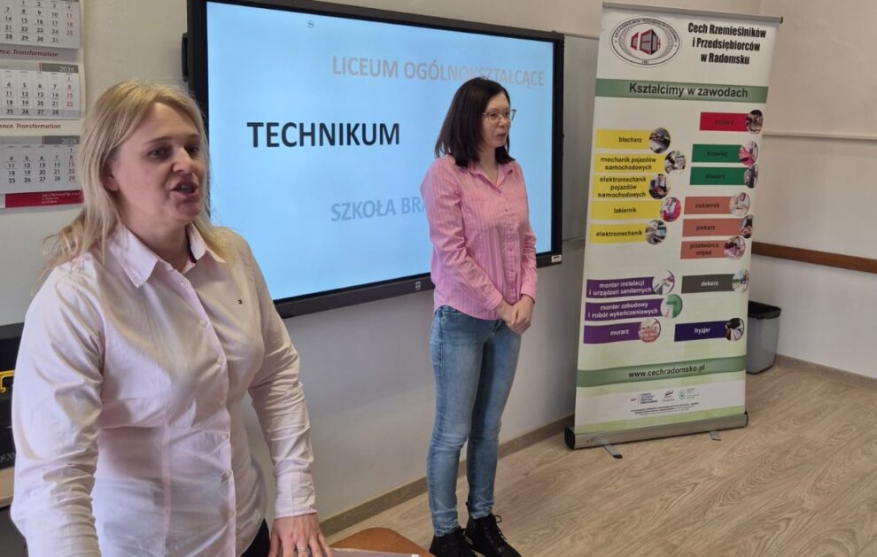 Spotkanie poprowadziły Edyta Depta, dyrektor Biura Cechu Rzemieślników i Przedsiębiorców w Radomsku oraz Justyna Wieczorek, doradca zawodowy Powiatowego Urzędu Pracy w Radomsku.