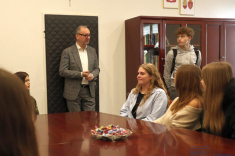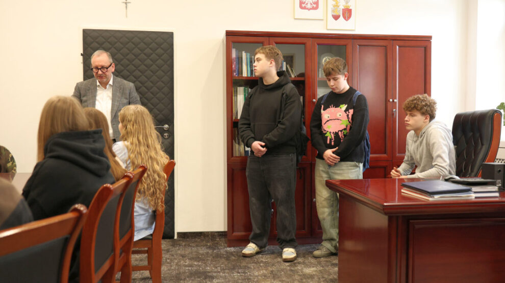 Młodzież z klas drugich o profilu humanistycznym i medycznym odwiedziła gabinet prezydenta Zduńskiej Woli Konrada Pokory. Podczas spotkania rozmawiano o zadaniach samorządu gminnego, kompetencjach prezydenta miasta oraz o tym, jakie sprawy mieszkańcy mogą załatwiać w urzędzie. Uczniowie dowiedzieli się również, jakie obowiązki spoczywają na władzach miasta i czego zduńskowolanie mogą oczekiwać od lokalnego samorządu.
