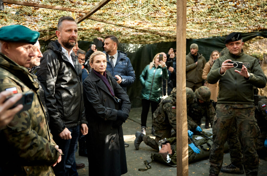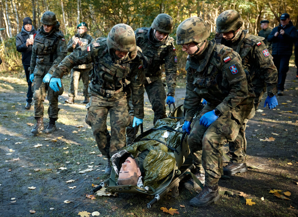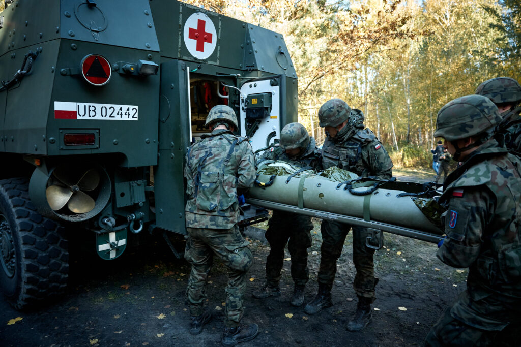 – Jesteśmy dziś w scenerii poligonowej. Będziemy obserwować ćwiczenia na poligonie medycznym – z ewakuacji medycznej oraz działań związanych z zagrożeniami chemicznymi i radiologicznymi. W trakcie konfliktu zbrojnego może wystąpić różnego rodzaju oddziaływanie, dlatego ćwiczymy ewakuację, zaopatrzenie i działania pierwszego ratownika – tego kolegi, który siedzi z tobą w okopie. To wszystko będzie dziś zarówno pokazane, jak i trenowane. Implementujemy – i to jest ostatnia rzecz, którą chcę powiedzieć – doświadczenia z Ukrainy. To bardzo ważne, abyśmy szkolili także żołnierzy ukraińskich. Takie szkolenie odbywa się również tutaj, na poligonie medycznym w Łodzi, gdzie medyków ukraińskich szkolą Polacy, Czesi i Kanadyjczycy. Jesteśmy gotowi do współdziałania ze wszystkimi, którzy chcą podnosić swoje kwalifikacje i umiejętności. Z całej mocy i siły otoczymy opieką każdy szpital przyjazny wojsku. – podkreślił szef Ministerstwa Obrony Narodowej.