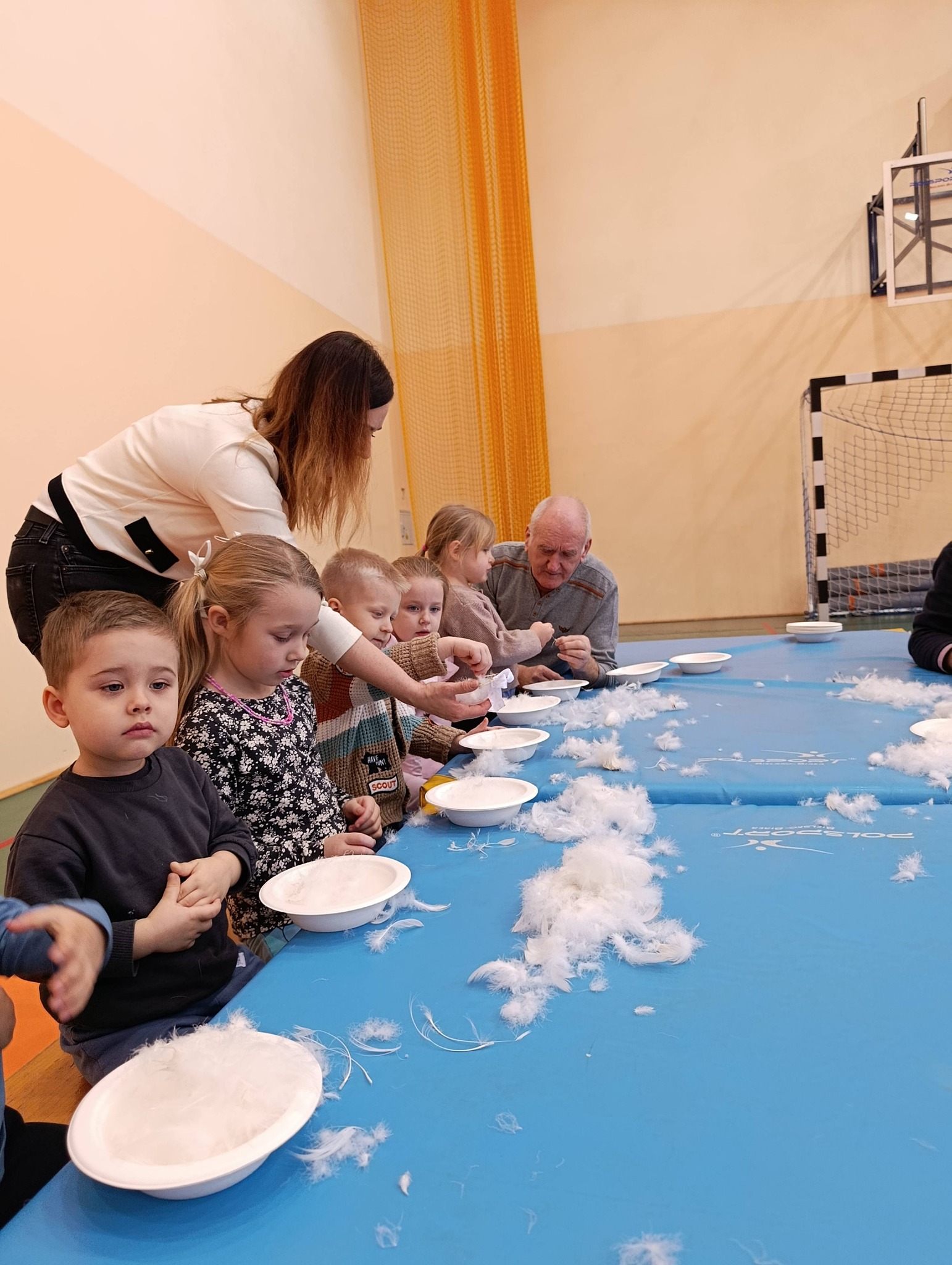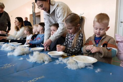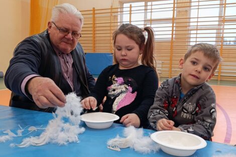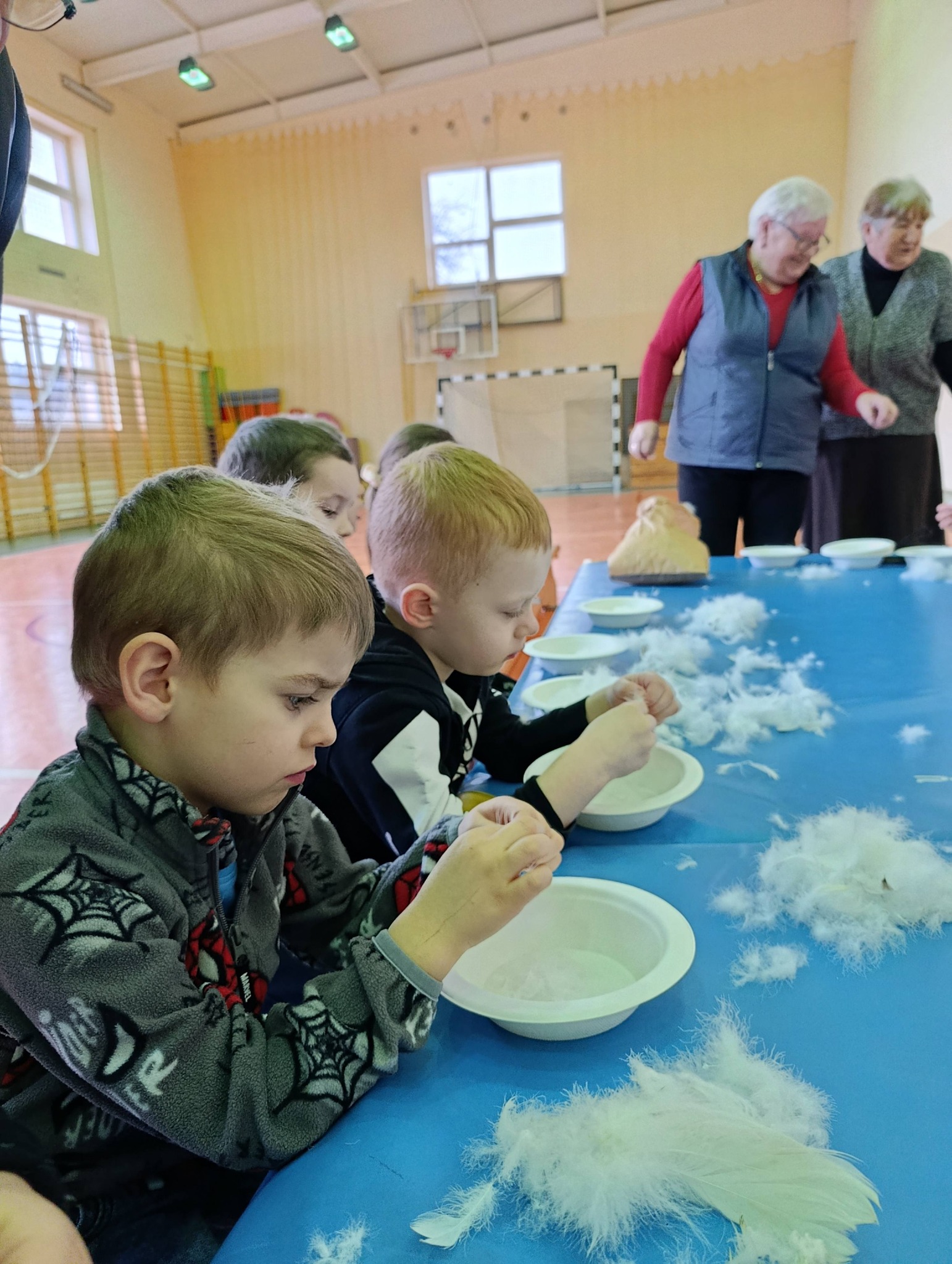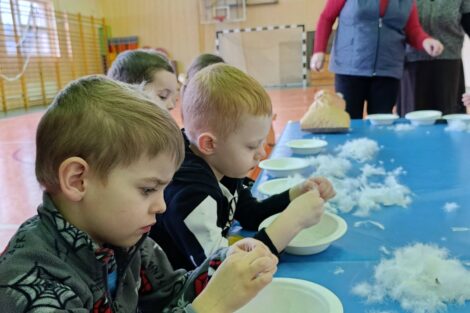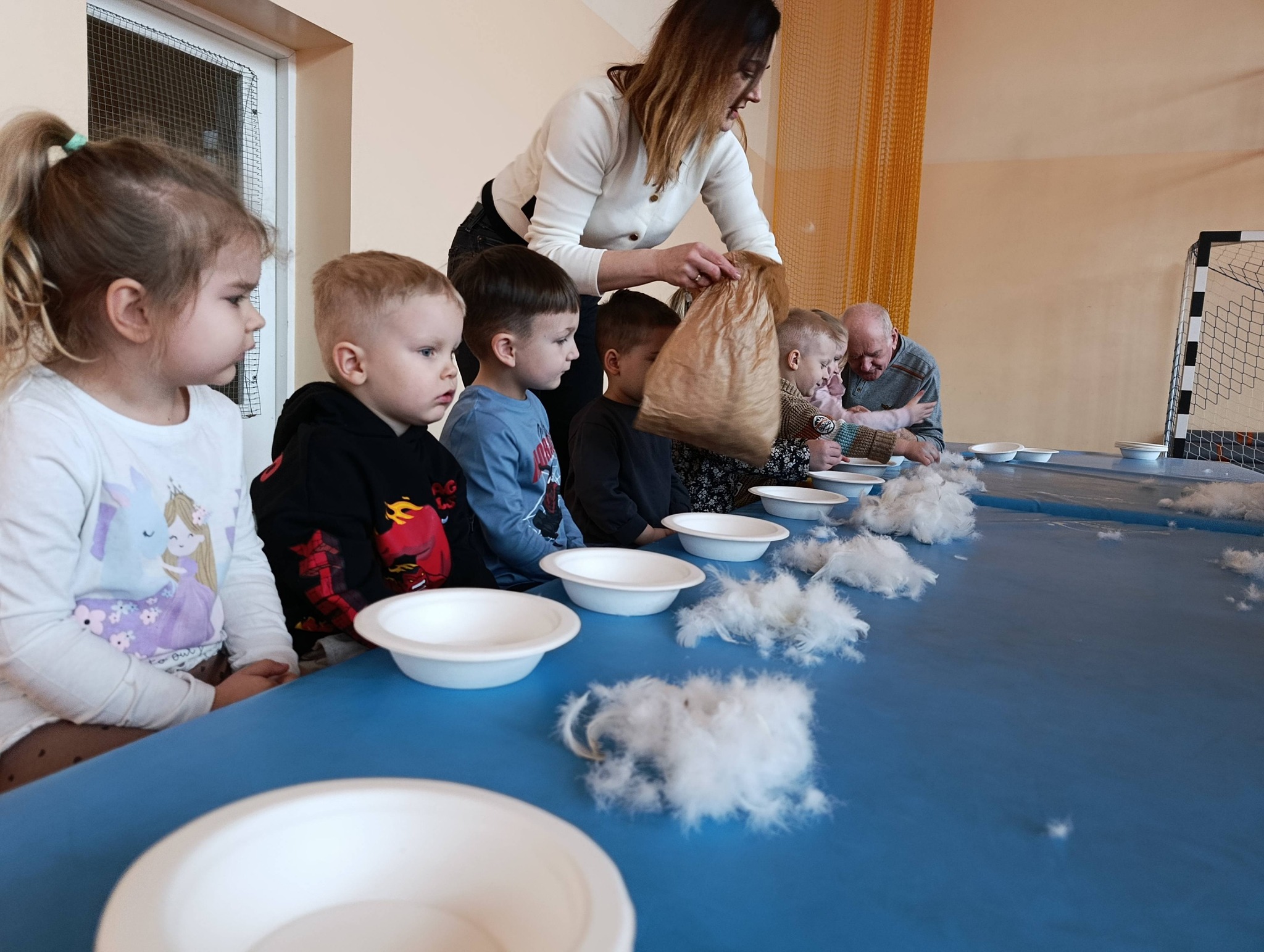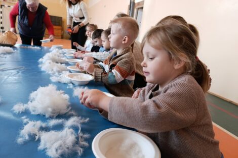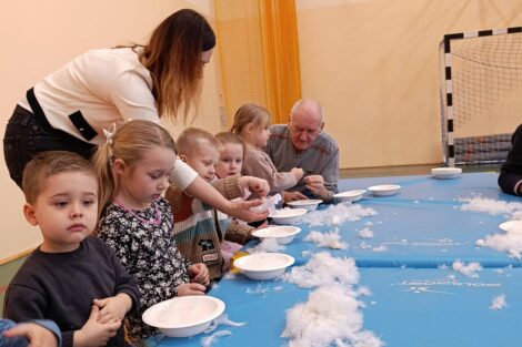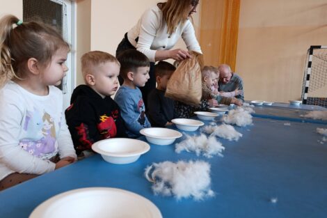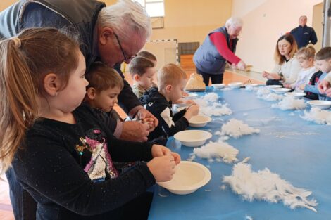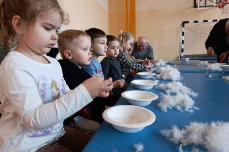 W pierzawce, czyli darciu pierza uczestniczyły dzieci z Przedszkola Samorządowego w Lgocie Wielkiej, zaprosił Klub Seniora z Brudzic