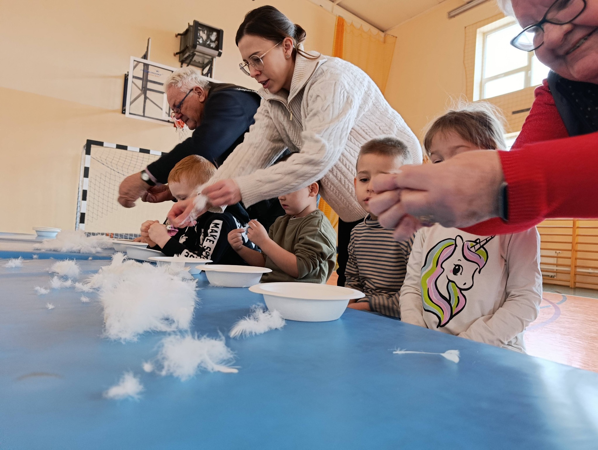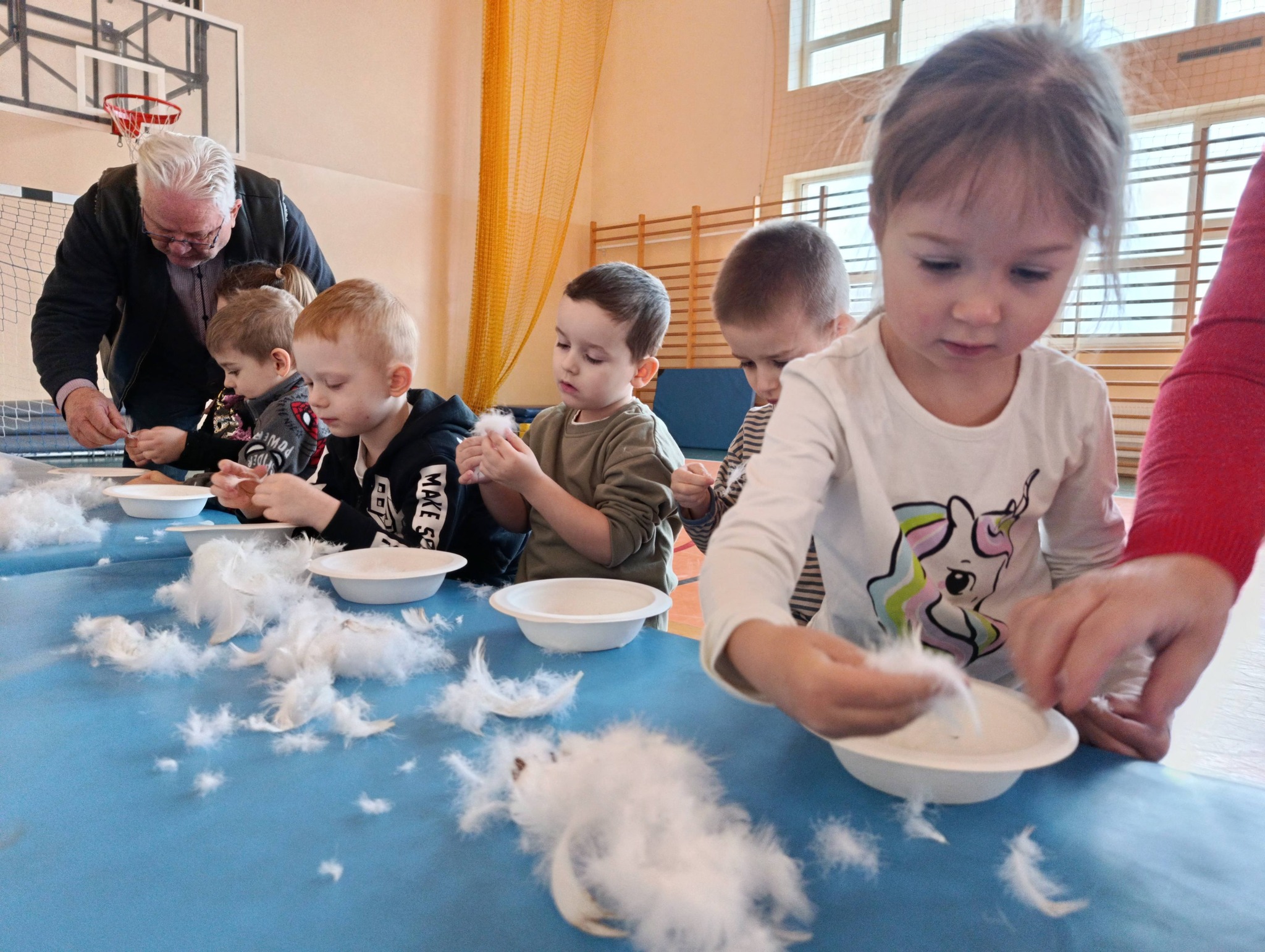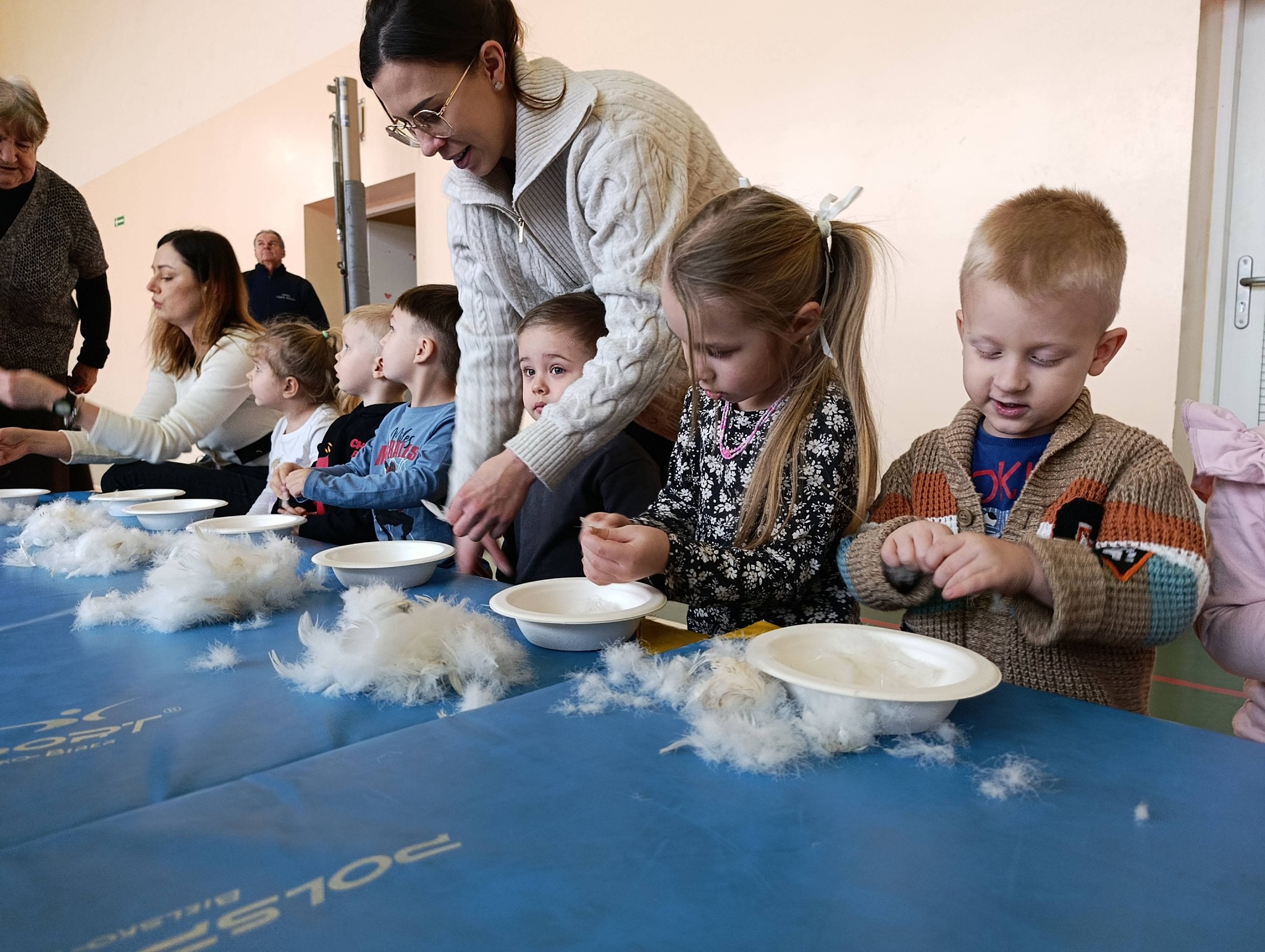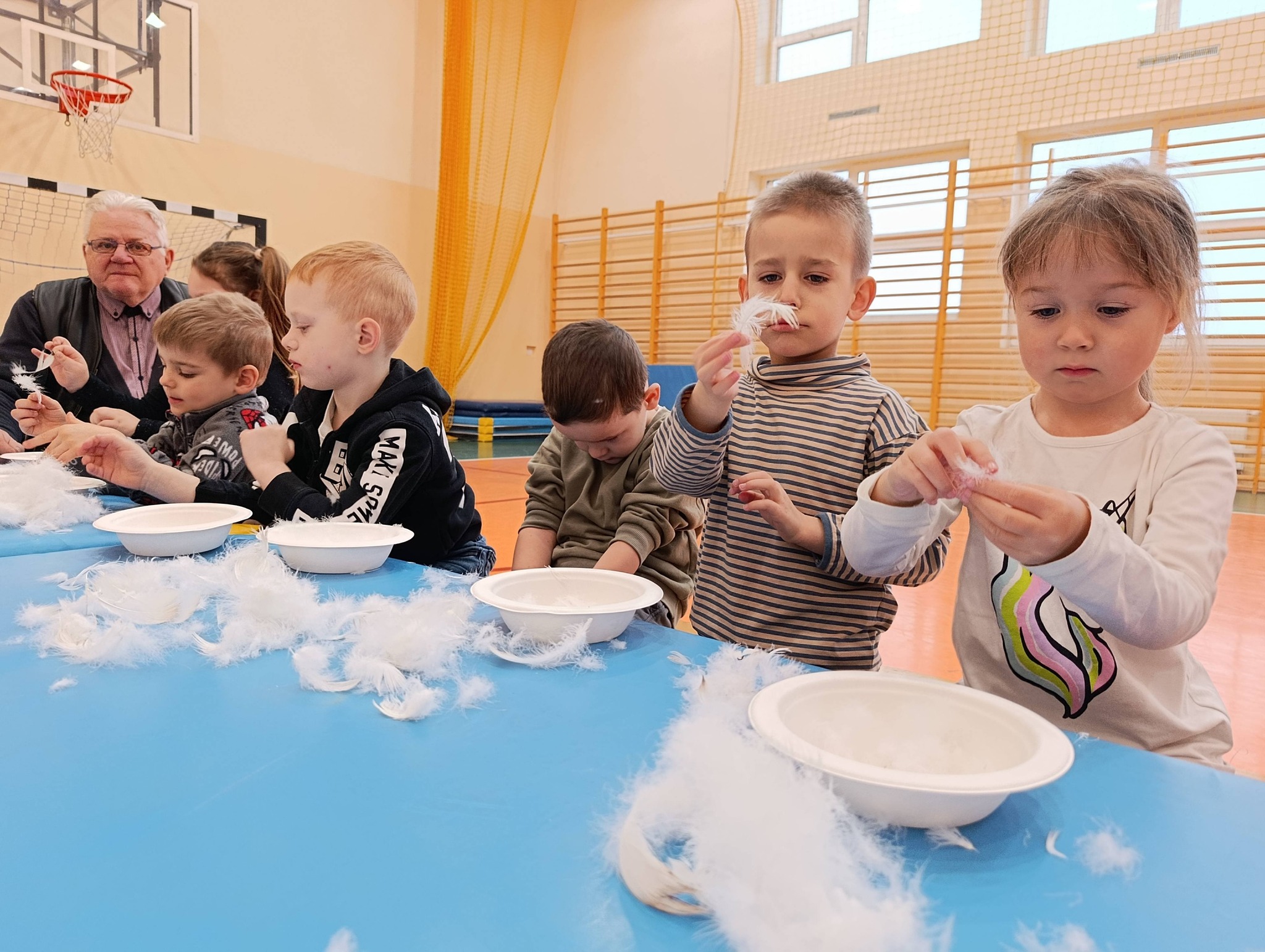 W pierzawce, czyli darciu pierza uczestniczyły dzieci z Przedszkola Samorządowego w Lgocie Wielkiej, zaprosił Klub Seniora z Brudzic