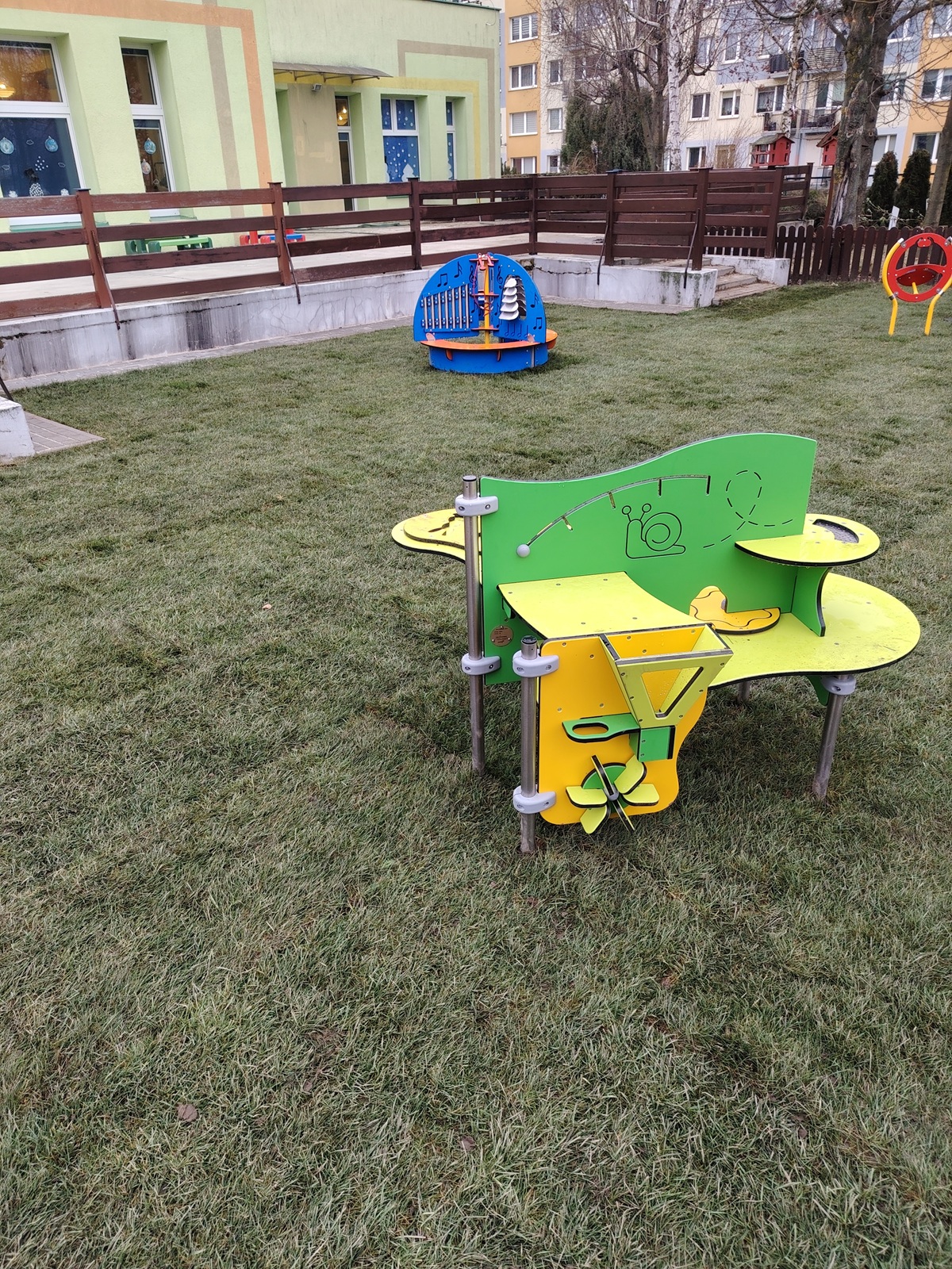 - zakupiono oraz zamontowano nowe wyposażenie ogrodu i strefy sensorycznej, dostosowane do potrzeb najmłodszych dzieci.