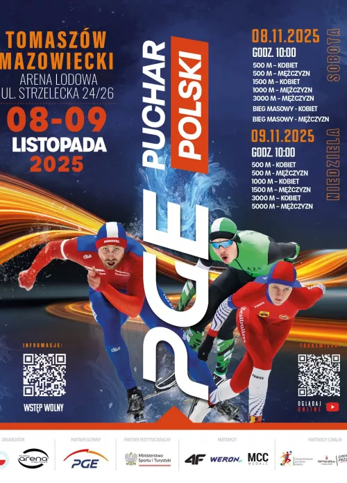 Już w najbliższy weekend, 8 i 9 listopada w Arenie Lodowej w Tomaszowie Mazowieckim przy ul. Strzeleckiej 24/26 rozpocznie się rywalizacja w ramach PGE Pucharu Polski w łyżwiarstwie szybkim na torze długim. Zawody przyciągną czołówkę polskich panczenistów, a także młode talenty, które walczyć będą o rekordy życiowe i cenne doświadczenie. To będzie doskonała okazja do sprawdzenia formy zawodników w pierwszej części sezonu 2025/2026.