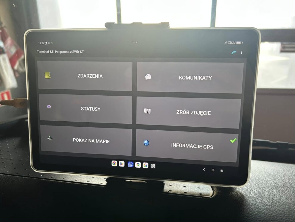 Terminal ST to specjalistyczne urządzenie umożliwiające m.in. przesyłanie statusów, komunikację dyspozycyjną, szybkie raportowanie oraz precyzyjne lokalizowanie miejsc zdarzeń. Dzięki jego zastosowaniu poprawia się szybkość i jakość wymiany informacji, a także koordynacja działań ratowniczych.