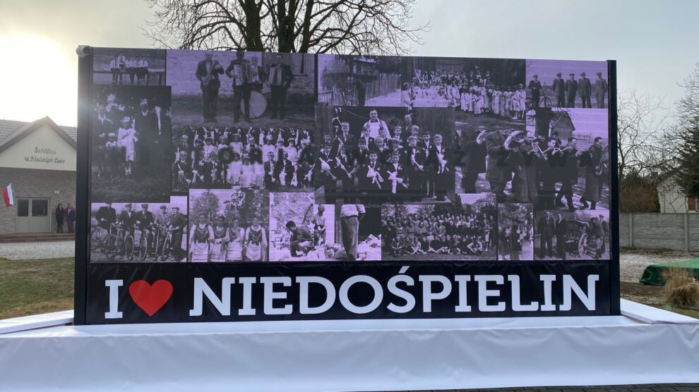 Powstanie deskalu stało się możliwe dzięki inicjatywie sołtys Niedośpielina, Anny Sikorskiej-Bączyk, przy wsparciu Koła Gospodyń Wiejskich „Szprychy” oraz mieszkańców, którzy społecznie wykonali wszystkie prace. Sołectwo zdobyło na realizację projektu 100 tys. zł z programu Urzędu Marszałkowskiego „Nasza infrastruktura sołecka”.