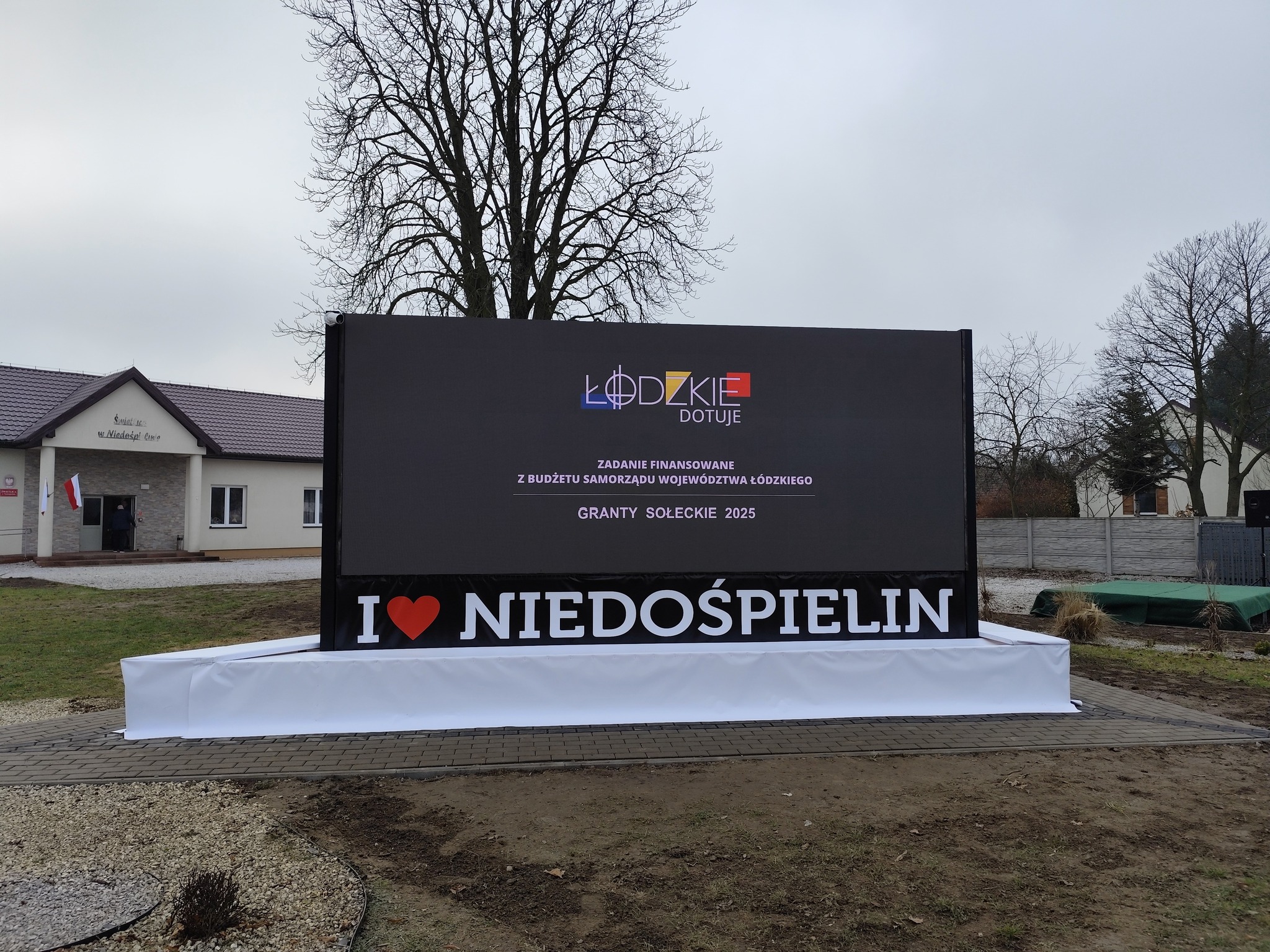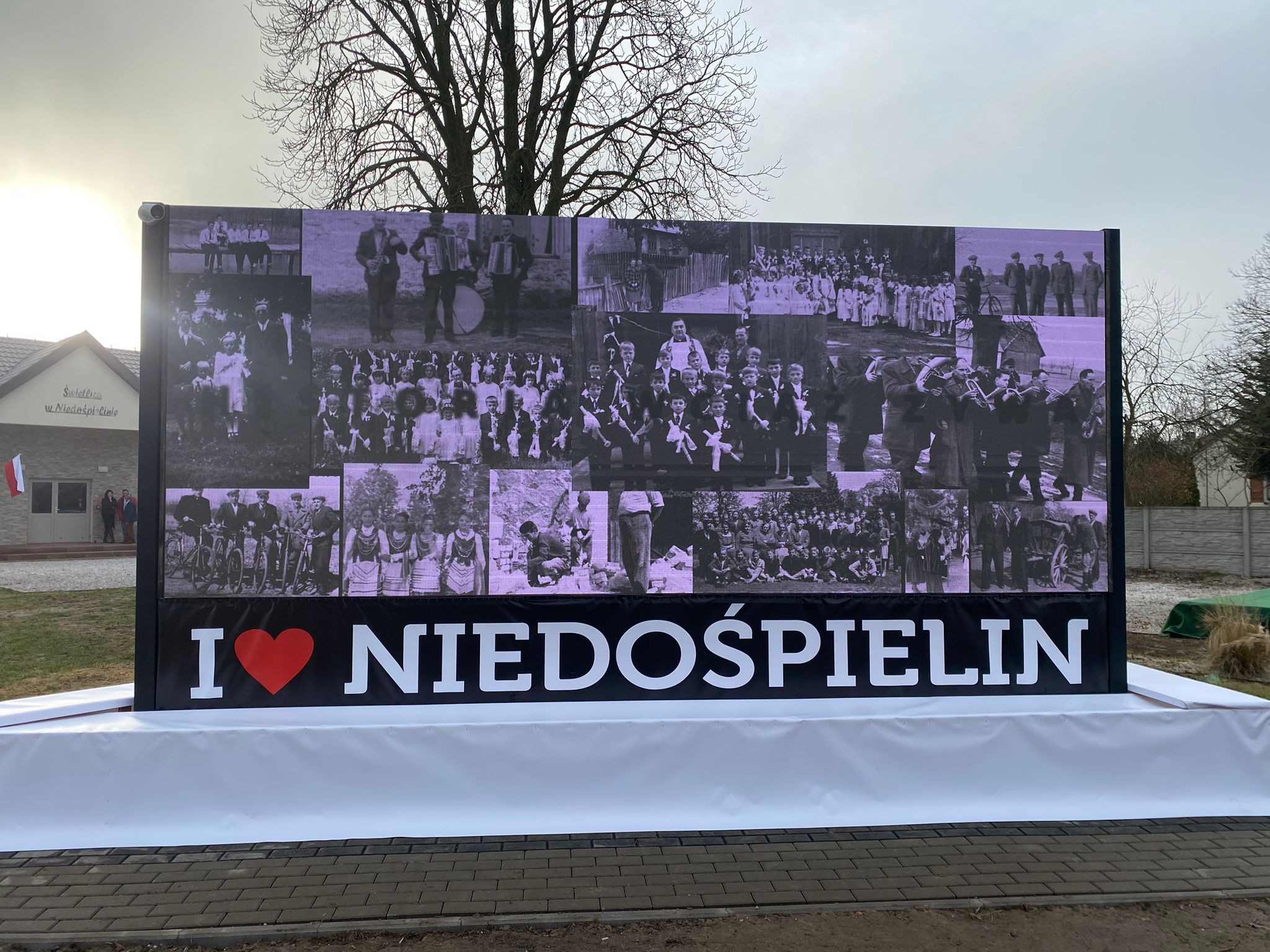Powstanie deskalu stało się możliwe dzięki inicjatywie sołtys Niedośpielina, Anny Sikorskiej-Bączyk, przy wsparciu Koła Gospodyń Wiejskich „Szprychy” oraz mieszkańców, którzy społecznie wykonali wszystkie prace. Sołectwo zdobyło na realizację projektu 100 tys. zł z programu Urzędu Marszałkowskiego „Nasza infrastruktura sołecka”.