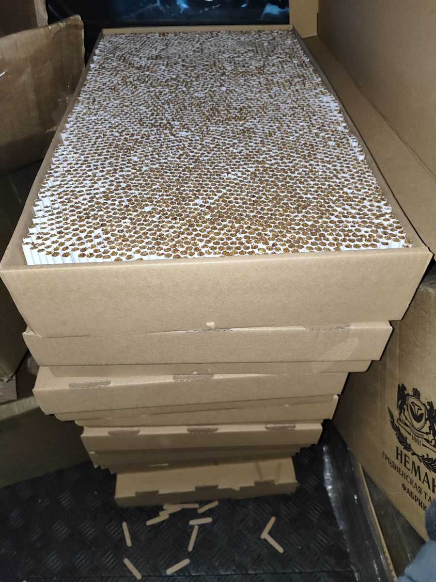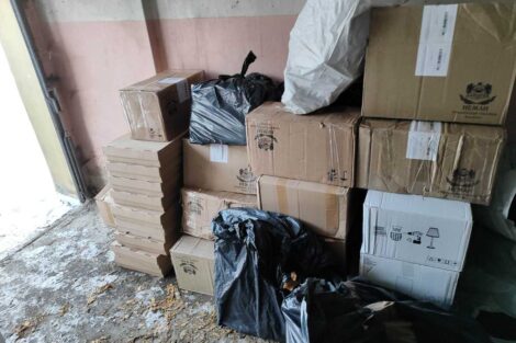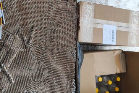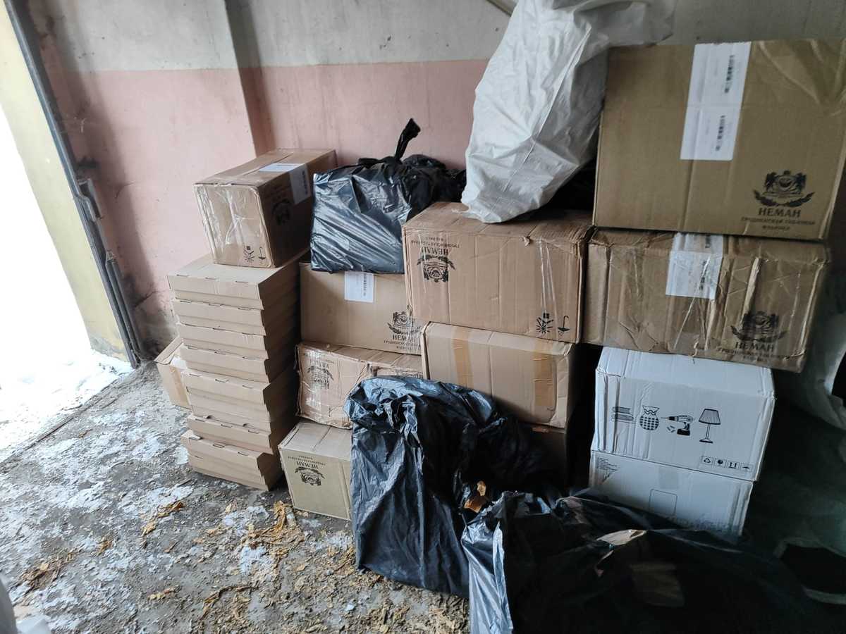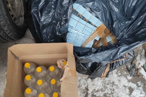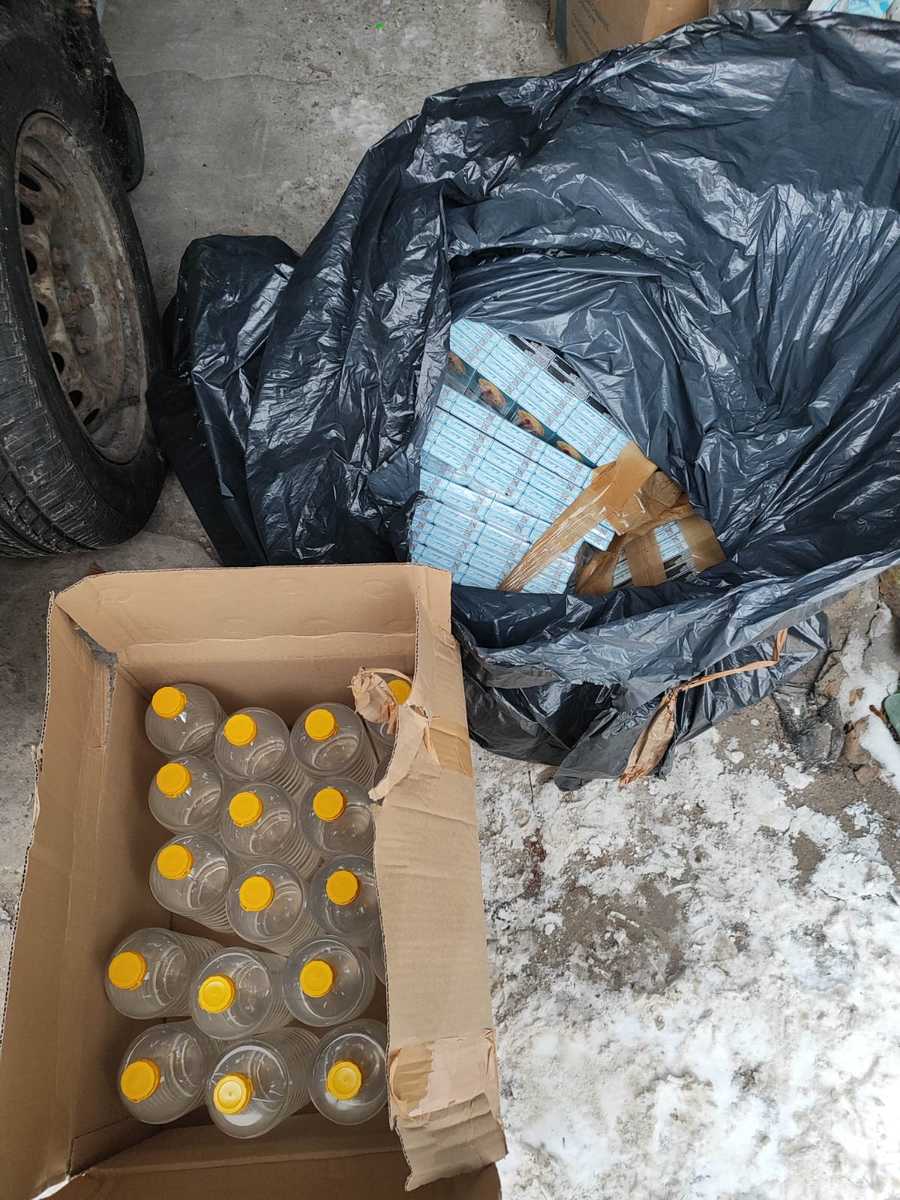 Na tym jednak działania się nie zakończyły. Policjanci sprawdzili posesję, z której wcześniej wyjechał zatrzymany. W jednym z garaży, do którego prowadziły świeże ślady na śniegu, ujawniono kartony z litrowymi butelkami wypełnionymi cieczą o zapachu alkoholu oraz kolejne porcje tytoniu. Następnie funkcjonariusze przeszukali inne garaże przy tej samej ulicy, gdzie odkryli jeszcze większe ilości kontrabandy – dziesiątki tysięcy sztuk papierosów różnych marek oraz 112 butelek PET z alkoholem. Dodatkowe wyroby tytoniowe znaleziono również w miejscu zamieszkania 55-latka.