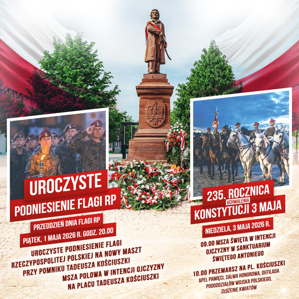 – uroczyste podniesienie Flagi Rzeczypospolitej Polskiej na nowy maszt przy Pomniku Tadeusza Kościuszki;