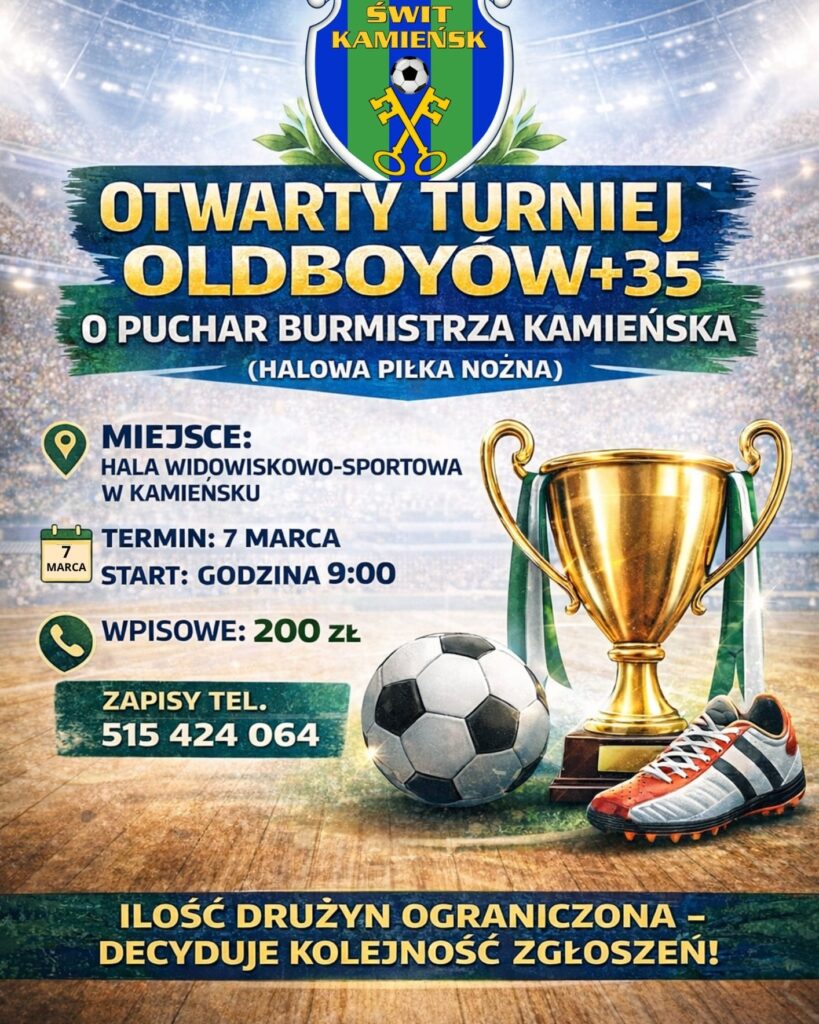 Turniej zostanie rozegrany w sobotę, 7 marca, w Hali Widowiskowo-Sportowej w Kamieńsku. Początek rozgrywek o godz. 9, wpisowe to 200 zł od drużyny.