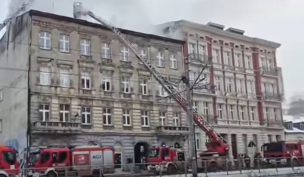 Ulica Kościuszki 22 od około godziny 10. 40 w Łodzi trwały tam intensywne działania gaśnicza. Doszło do pożaru opustoszałego jak się zdawało budynku mieszkalnego z 4 kondygnacjami (3 piętra i parter). Ogień objął poddasze. Do akcji skierowano 10 zastępów straży pożarnej.
