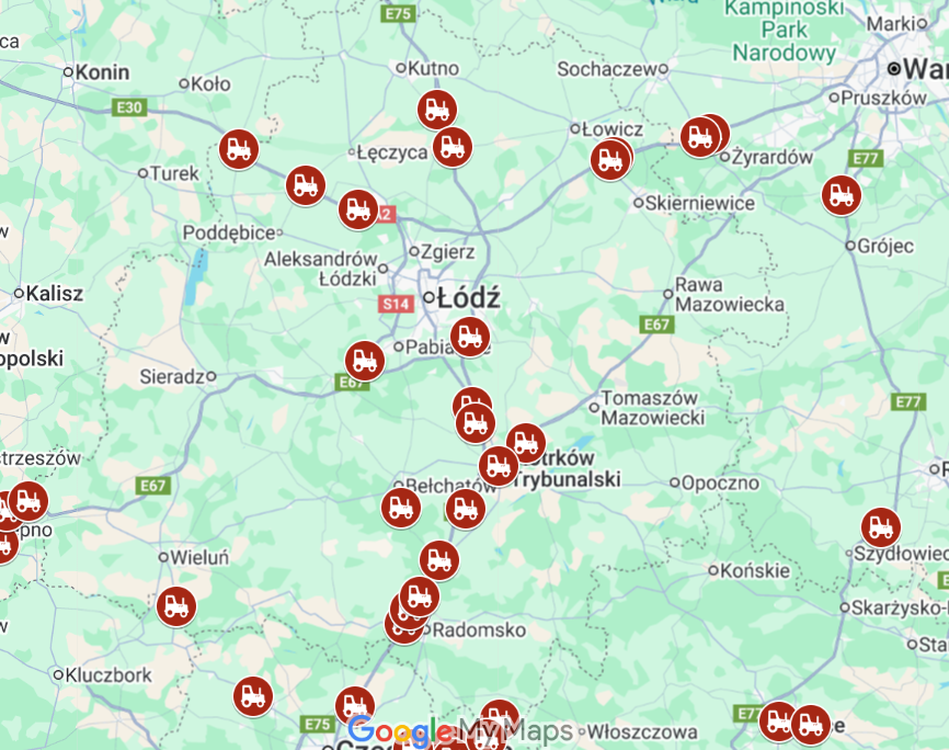 Na mapie protestów znalazł się zjazd na A2 Skierniewice, Łowicz a także Nieborów.