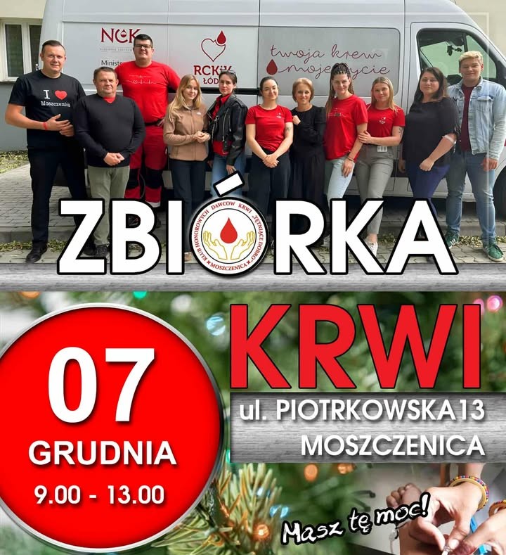 W Moszczenicy 7 grudnia odbędzie się kolejna szlachetna akcja krwiodawstwa zorganizowana przez Klub HDK Moszczenica „Tętniące Dobro”.