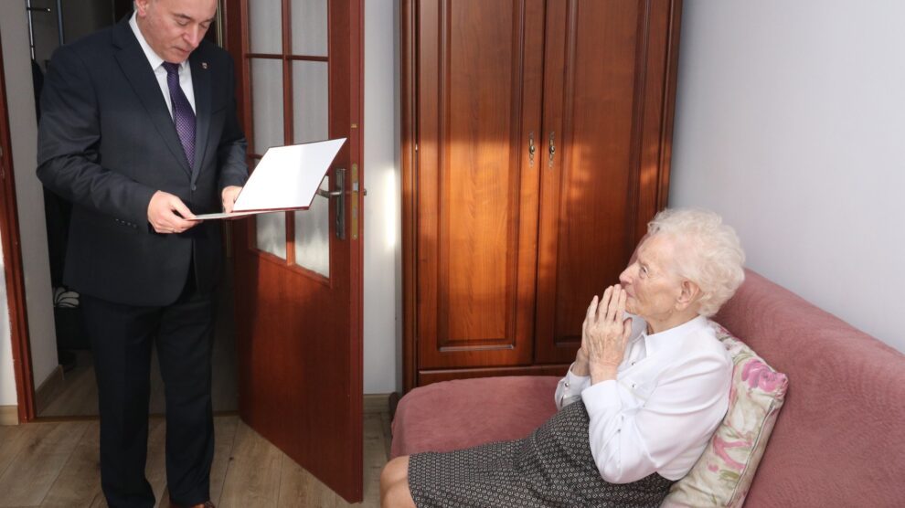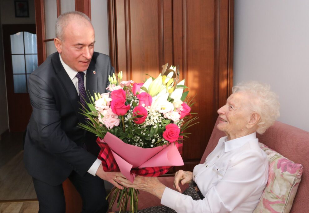 Z tej okazji Panią Irenę odwiedzili Dariusz Guzek, burmistrz Brzezin, Anna Klepczarek, przewodnicząca Rady Miasta Brzeziny, a także Aneta Góralczyk z Urzędu Stanu Cywilnego w Brzezinach. Goście przekazali Jubilatce nie tylko ciepłe słowa, ale również list gratulacyjny od premiera Donalda Tuska.
