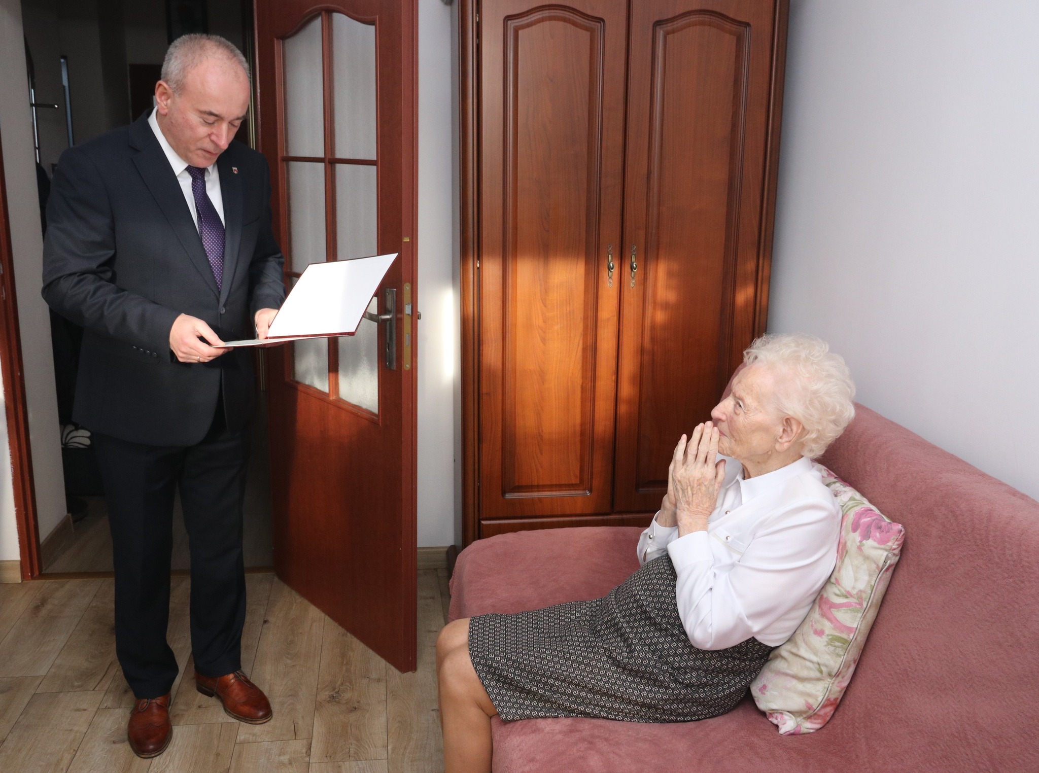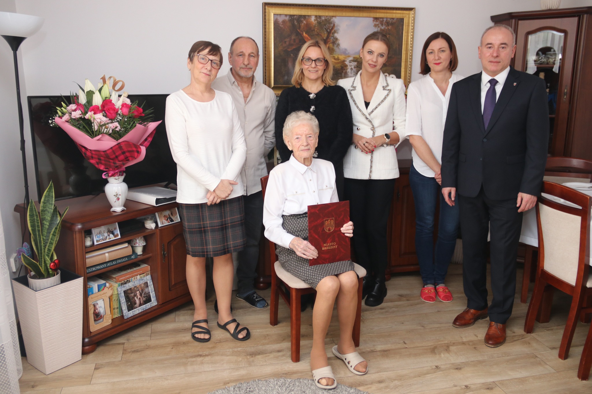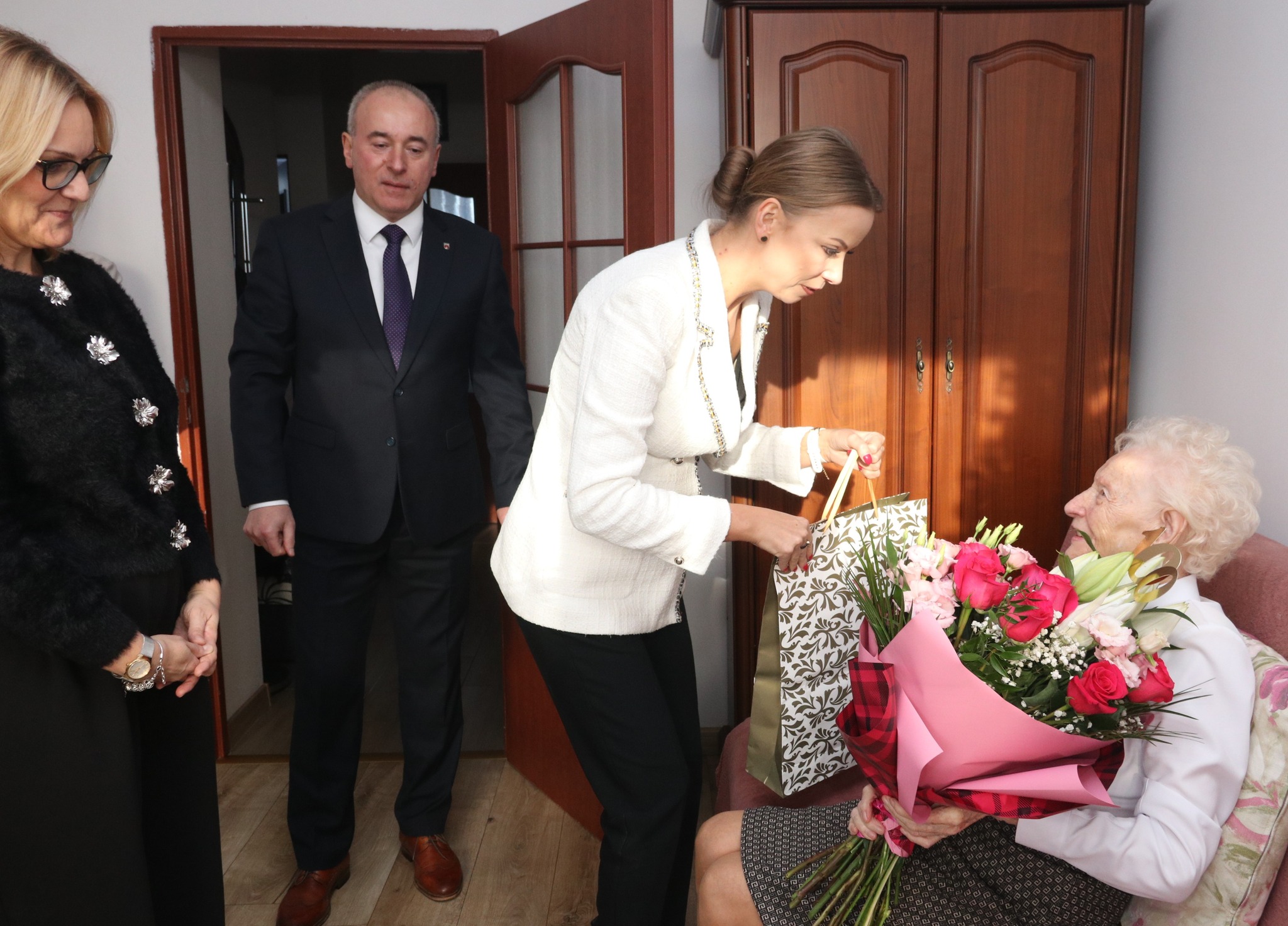 Z tej okazji Panią Irenę odwiedzili Dariusz Guzek, burmistrz Brzezin, Anna Klepczarek, przewodnicząca Rady Miasta Brzeziny, a także Aneta Góralczyk z Urzędu Stanu Cywilnego w Brzezinach. Goście przekazali Jubilatce nie tylko ciepłe słowa, ale również list gratulacyjny od premiera Donalda Tuska.
