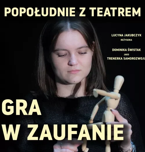 Na scenie w monodramie zobaczymy Dominikę Świstak, która wcieli się w rolę trenerki samorozwoju. Będzie to spektakl w pełen dystansu i humoru zatytułowany “Gra w zaufanie”.