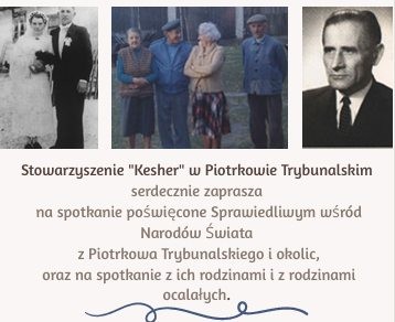 Stowarzyszenie „Kesher” w Piotrkowie Trybunalskim zaprasza na wyjątkowe spotkanie poświęcone Sprawiedliwym wśród Narodów Świata z Piotrkowa Trybunalskiego i okolic. Wydarzenie będzie także okazją do rozmów z rodzinami osób odznaczonych tym tytułem oraz z rodzinami ocalonych.