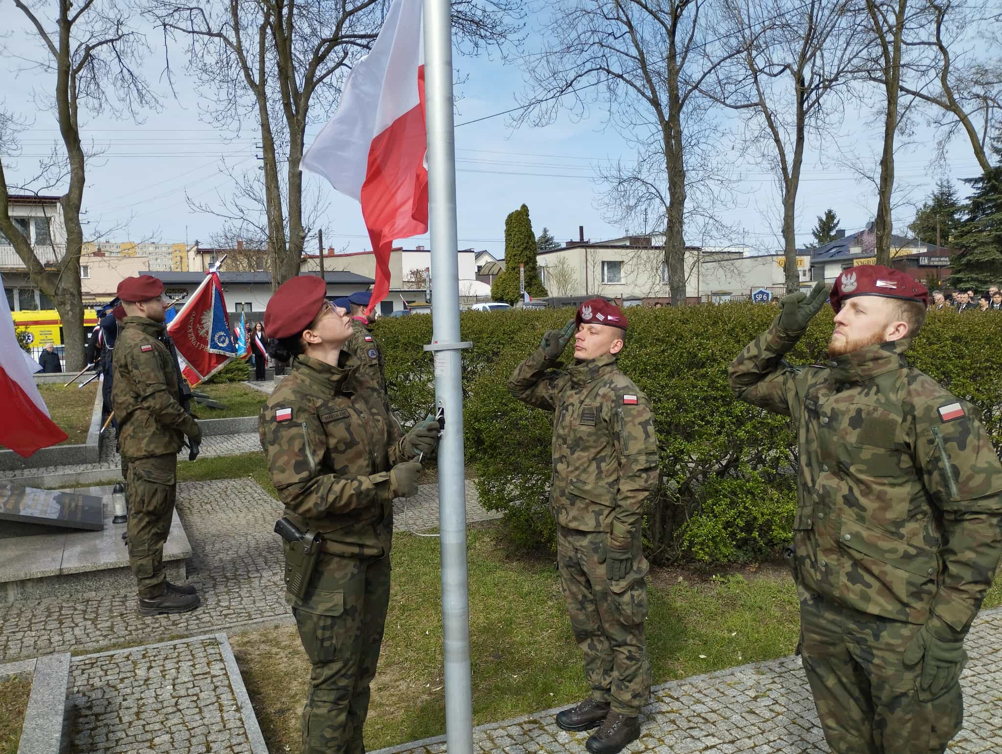 Podczas uroczystości w poniedziałek, 13 kwietnia, najpierw odegrano Hymn Państwowy i uroczyście podniesiono Biało-Czerwoną na maszt. Nie zabrakło modlitwy w intencji zamordowanych przez NKWD, okolicznościowego przemówienia, Apelu Pamięci i Salwy Honorowej. Przybyłe delegacje złożyły wieńce i wiązanki kwiatów pod Krzyżem Katyńskim.