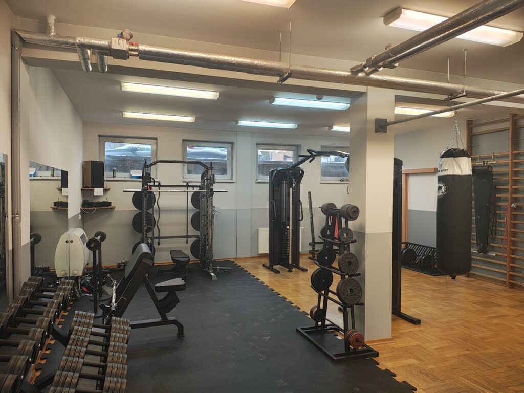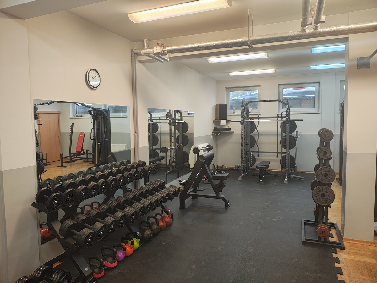 Siłownię doposażono również w stanowiska do ćwiczeń z wolnymi ciężarami – ławki treningowe, sztangi, hantle o zróżnicowanym obciążeniu oraz kettlebelle. Uzupełnieniem wyposażenia jest sprzęt do treningu wydolnościowego. W tym ergometr wioślarski, a także worek treningowy, który pozwala doskonalić kondycję, refleks i koordynację ruchową.