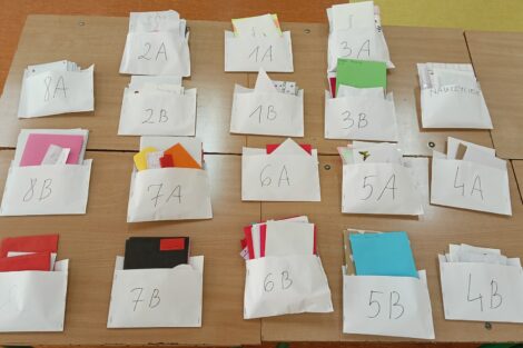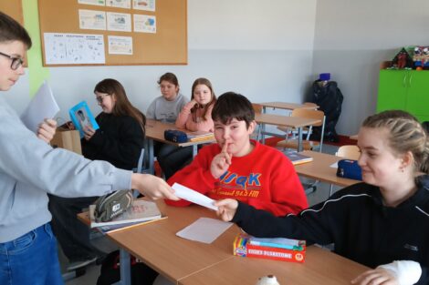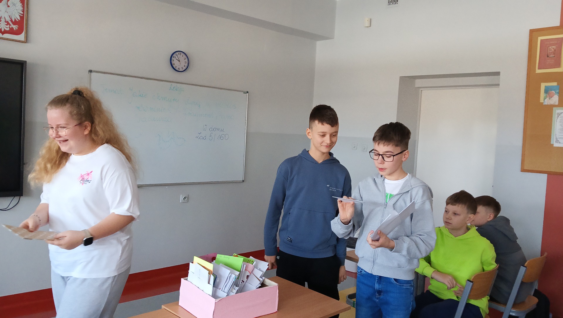 Specjalnie przygotowana skrzynka zapełniała się kolorowymi kartkami, miłymi wiadomościami i dowodami sympatii. Uczniowie chętnie pisali do swoich koleżanek, kolegów, przyjaciół, a także nauczycieli, pokazując, jak ważne są dla nich dobre relacje i życzliwe słowa.