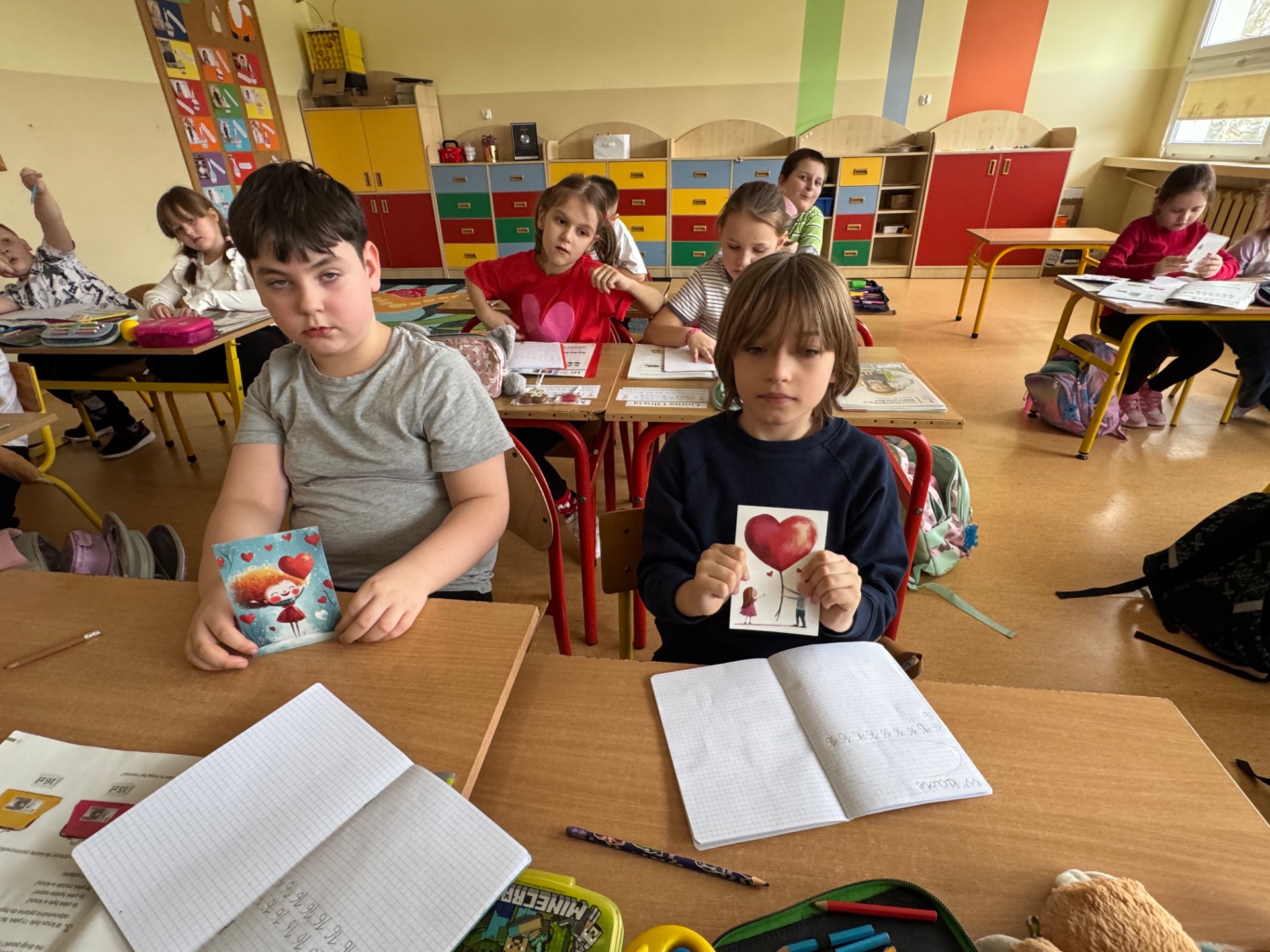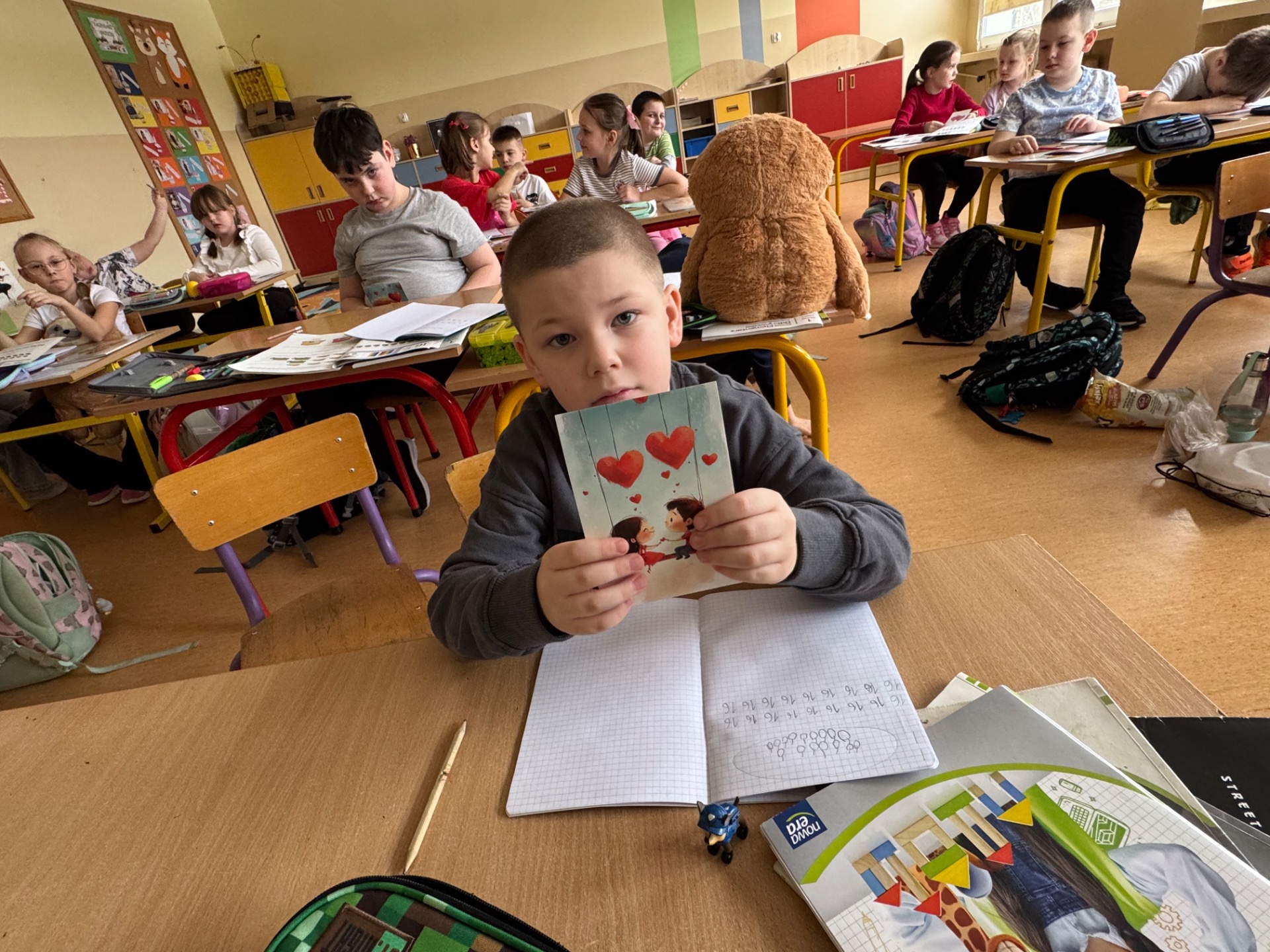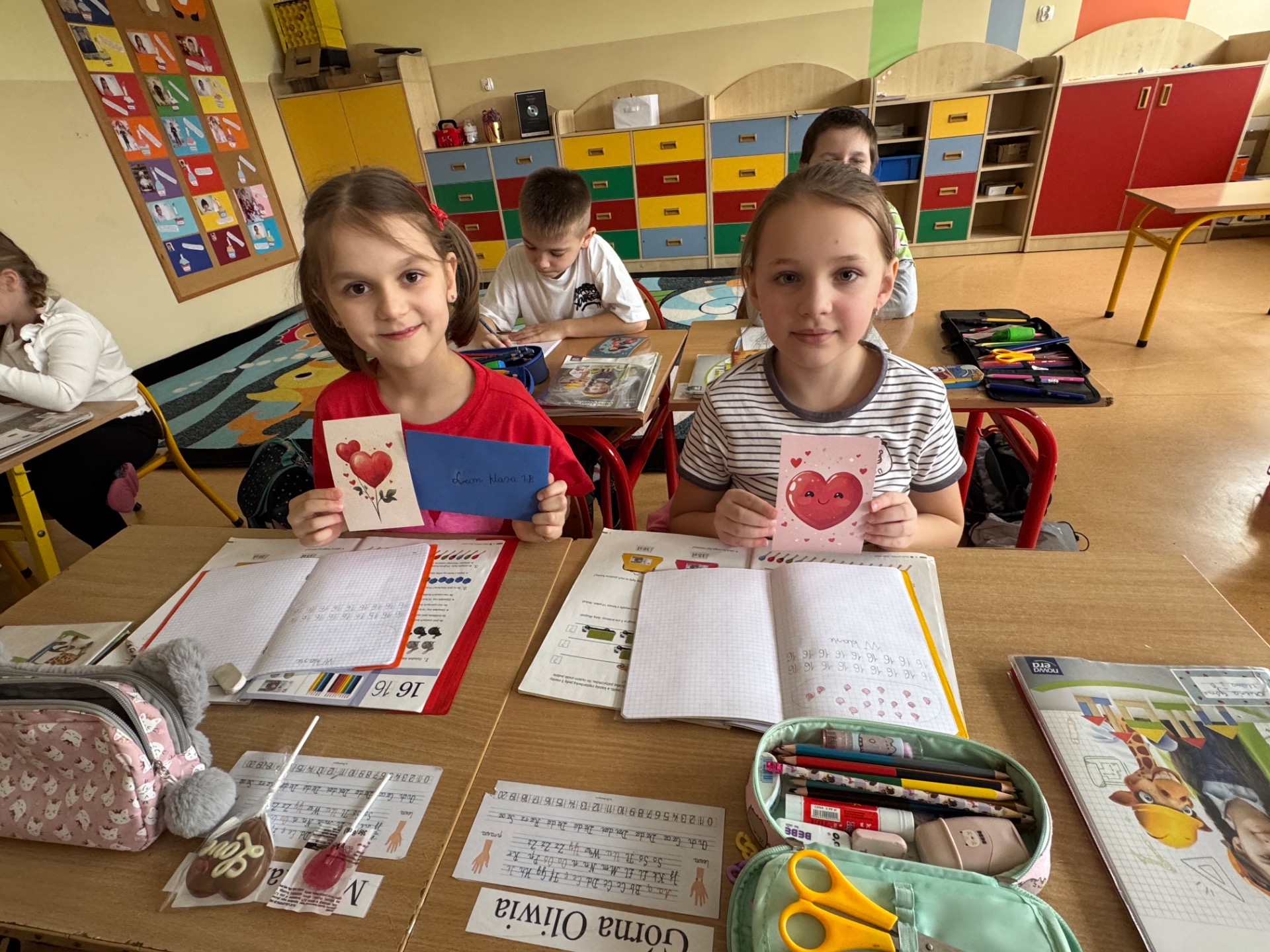 Po feriach nadszedł najbardziej wyczekiwany moment – rozdanie walentynek. Kartki trafiły do adresatów, wywołując wiele uśmiechów, radości i wzruszeń. Miłe słowa, drobne gesty i sympatyczne wiadomości sprawiły, że ten dzień stał się naprawdę wyjątkowy.