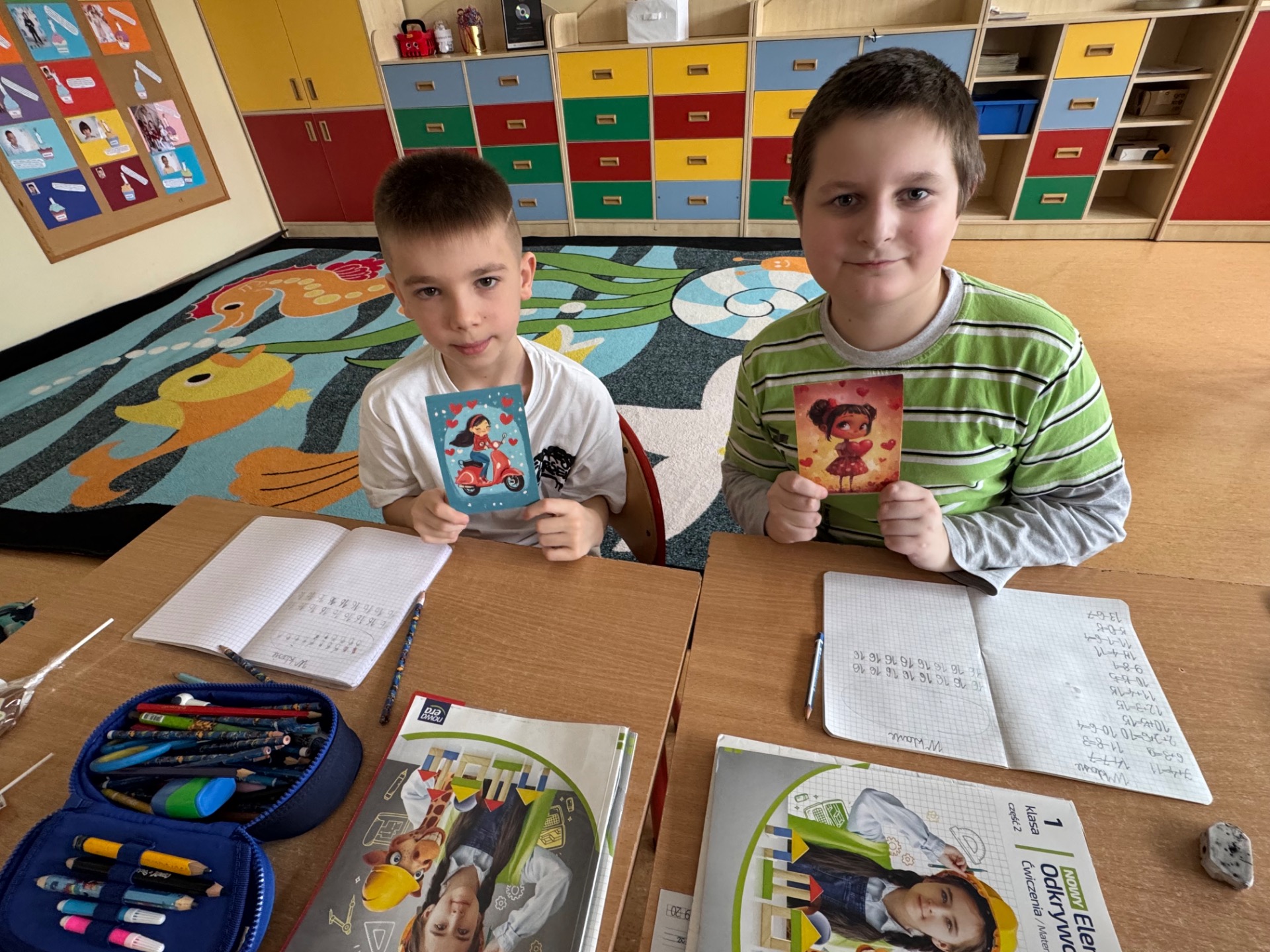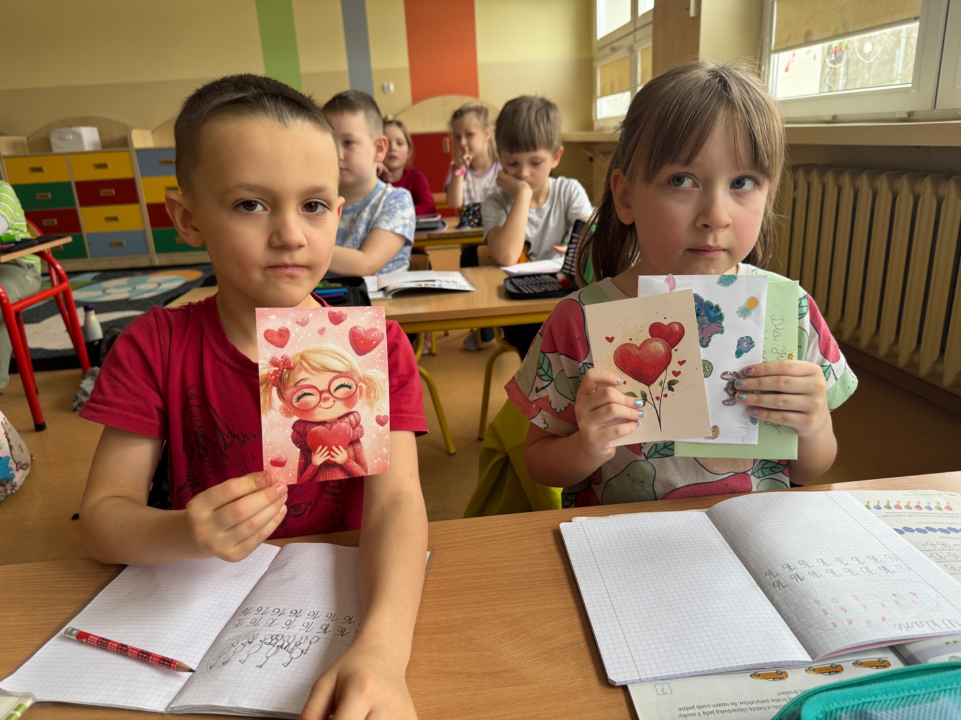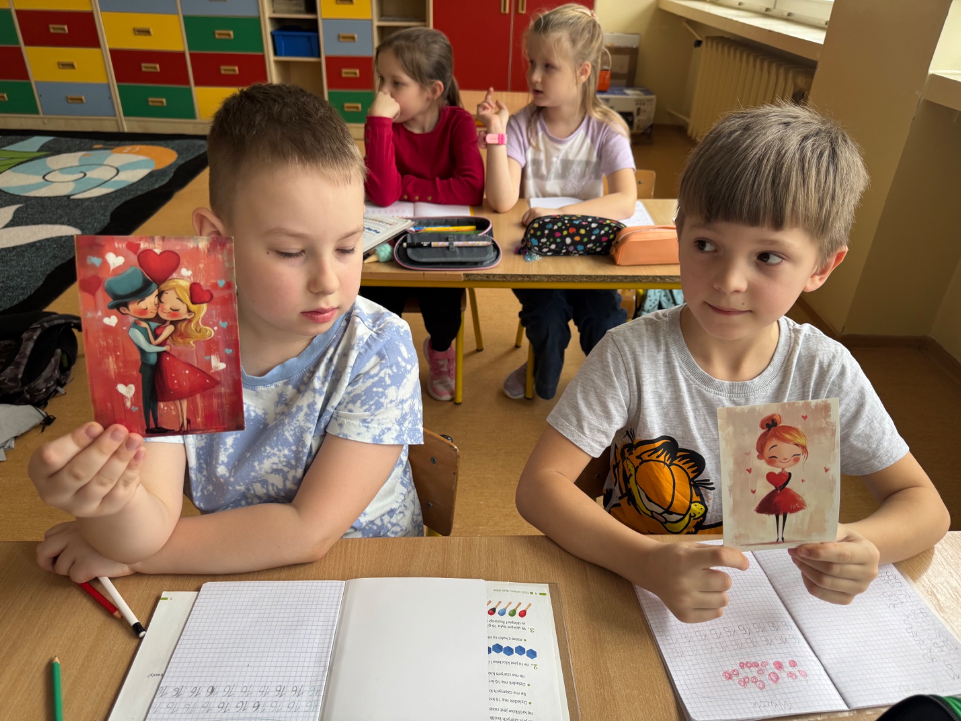 Po feriach nadszedł najbardziej wyczekiwany moment – rozdanie walentynek. Kartki trafiły do adresatów, wywołując wiele uśmiechów, radości i wzruszeń. Miłe słowa, drobne gesty i sympatyczne wiadomości sprawiły, że ten dzień stał się naprawdę wyjątkowy.