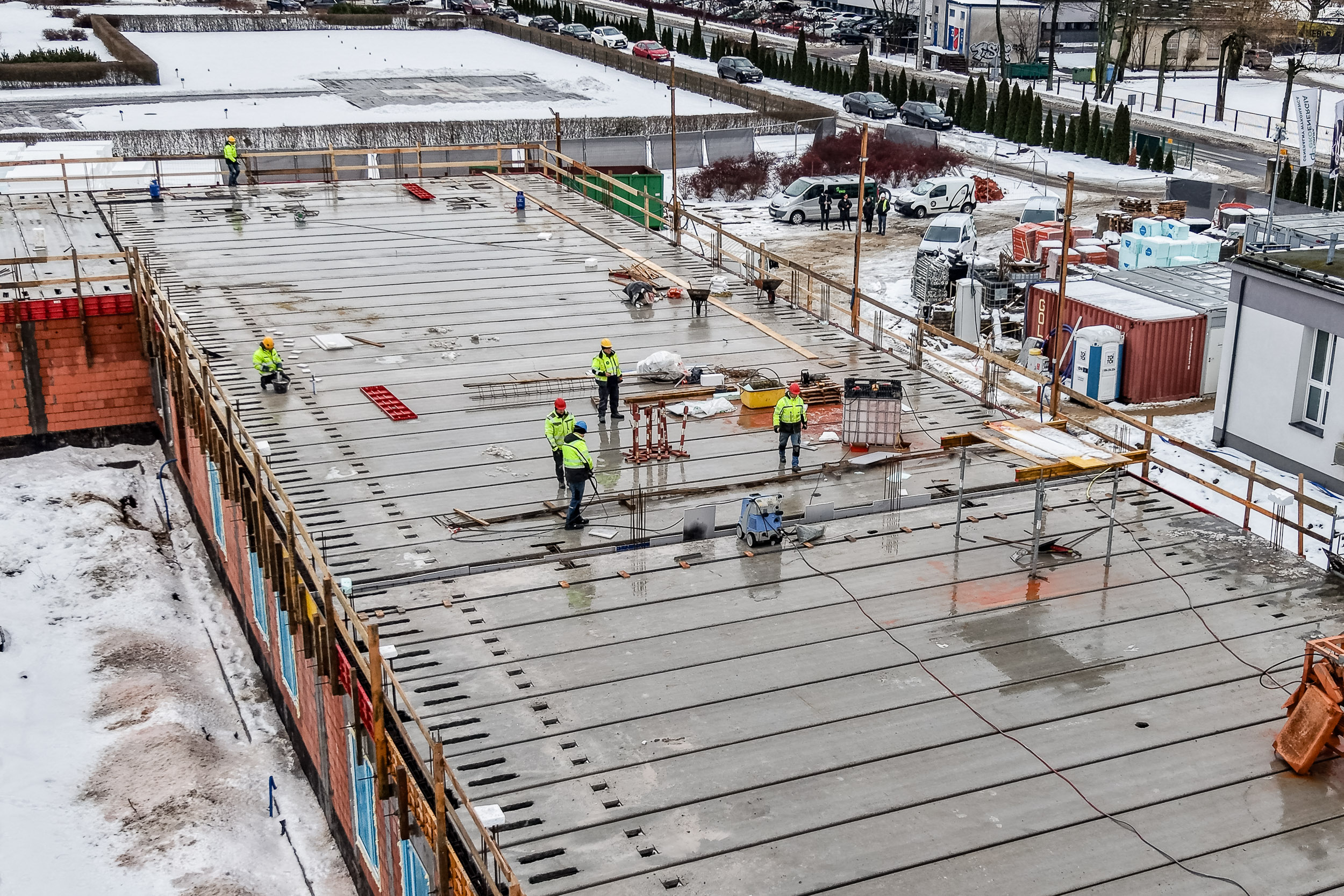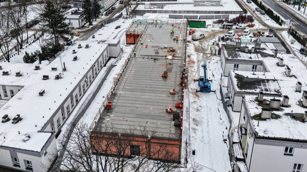 Prace przy budowie Zakładu Opiekuńczo-Leczniczego w Skierniewicach w toku i trzeba przyznać, że przebiegają zgodnie z harmonogramem. Obiekt osiągnął już stan surowy zamknięty. Wykonano strop oraz zakończono wszystkie prace murarskie. Kolejne etapy inwestycji realizowane są bardzo sprawnie, mimo niesprzyjających warunków pogodowych.
