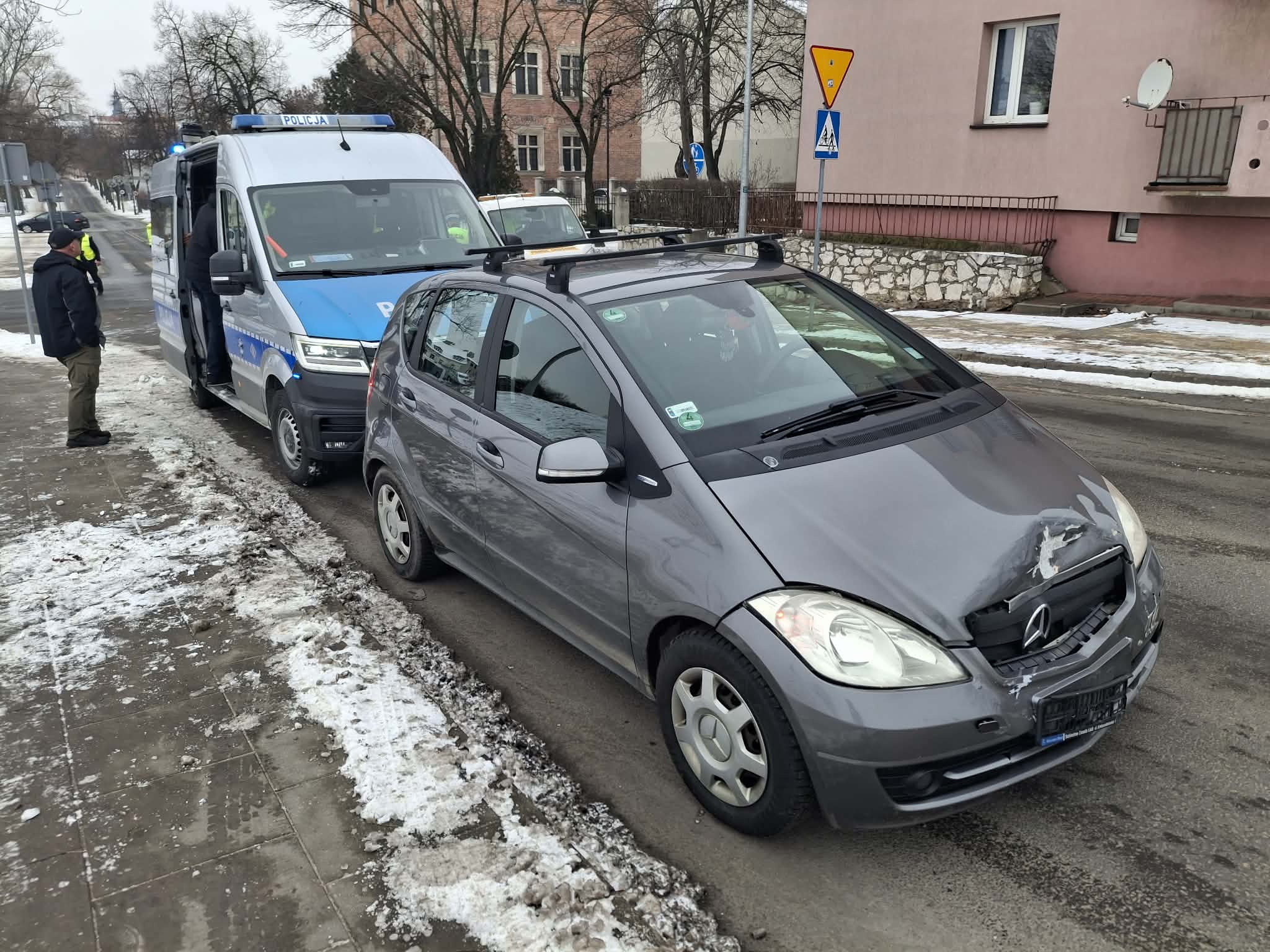Zderzyły się tam dwa samochody osobowe – Renault oraz Mercedes. Na szczęście podczas tego zdarzenia, nikomu nic się nie stało. Policja ustala dokładne przyczyny kolizji.