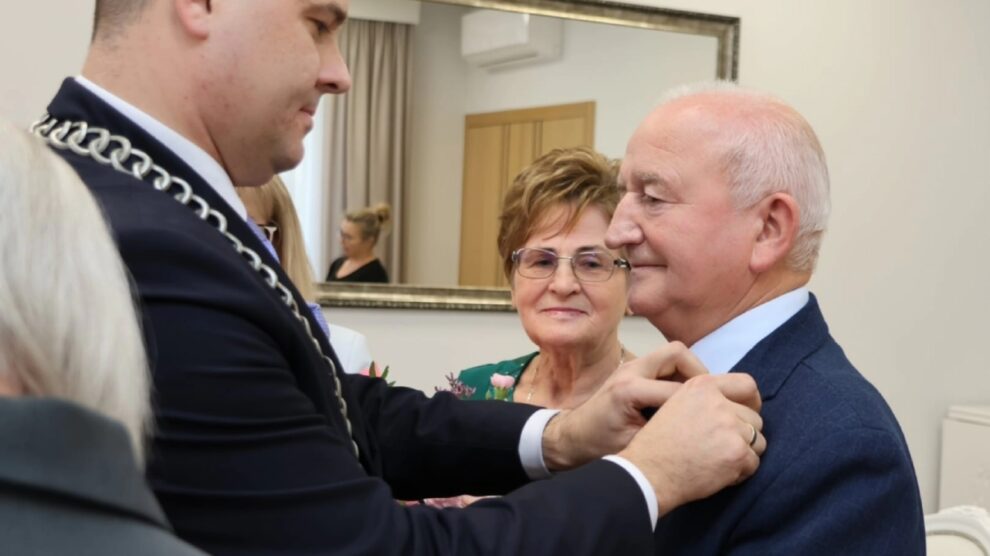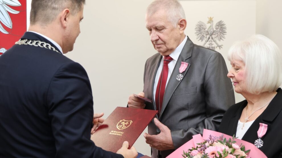 Burmistrz Kamieńska Jarosław Bąkowicz pogratulował Jubilatom imponującego jubileuszu 50-lecia małżeństwa. W imieniu Prezydenta Rzeczypospolitej Polskiej wręczył Medale za Długoletnie Pożycie Małżeńskie, a także listy gratulacyjne i okolicznościowe upominki.