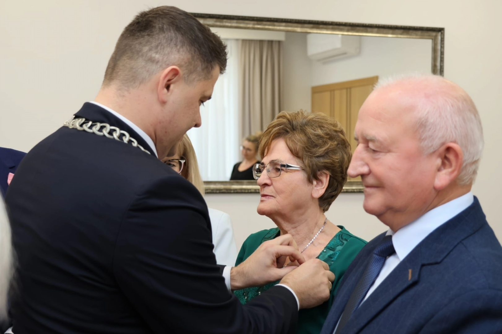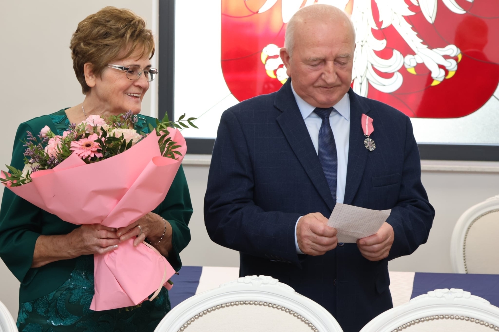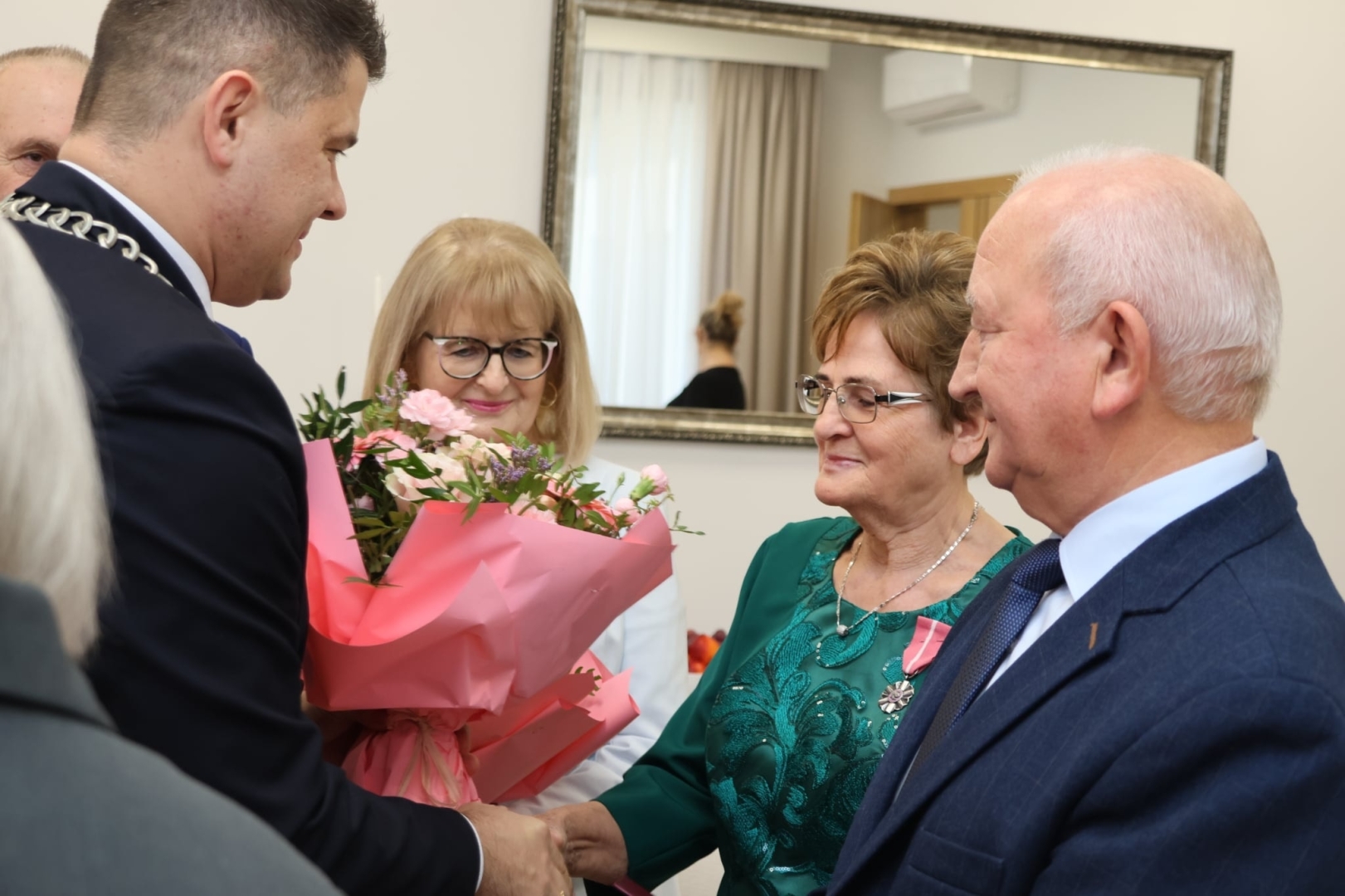 Burmistrz Kamieńska Jarosław Bąkowicz pogratulował Jubilatom imponującego jubileuszu 50-lecia małżeństwa. W imieniu Prezydenta Rzeczypospolitej Polskiej wręczył Medale za Długoletnie Pożycie Małżeńskie, a także listy gratulacyjne i okolicznościowe upominki.