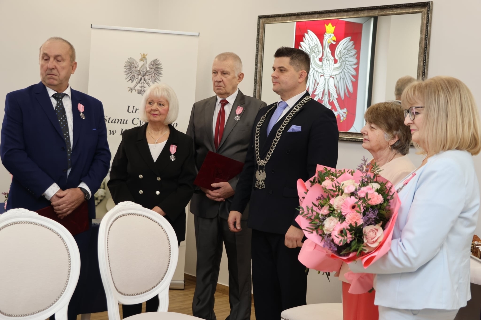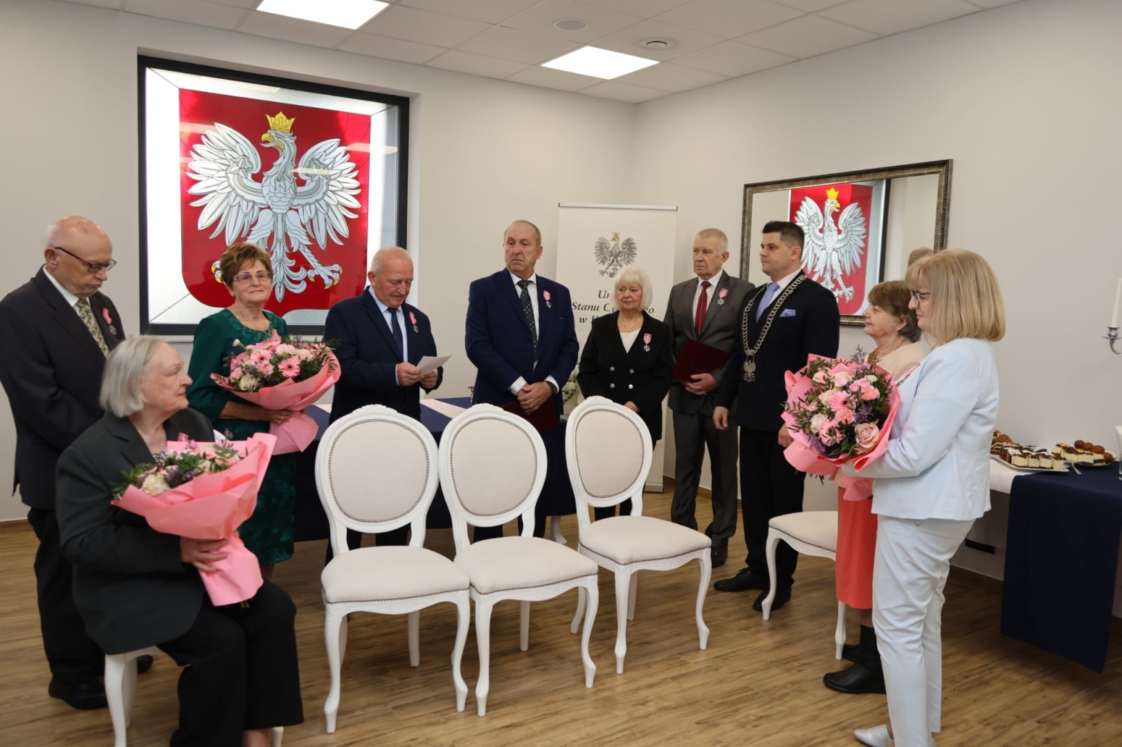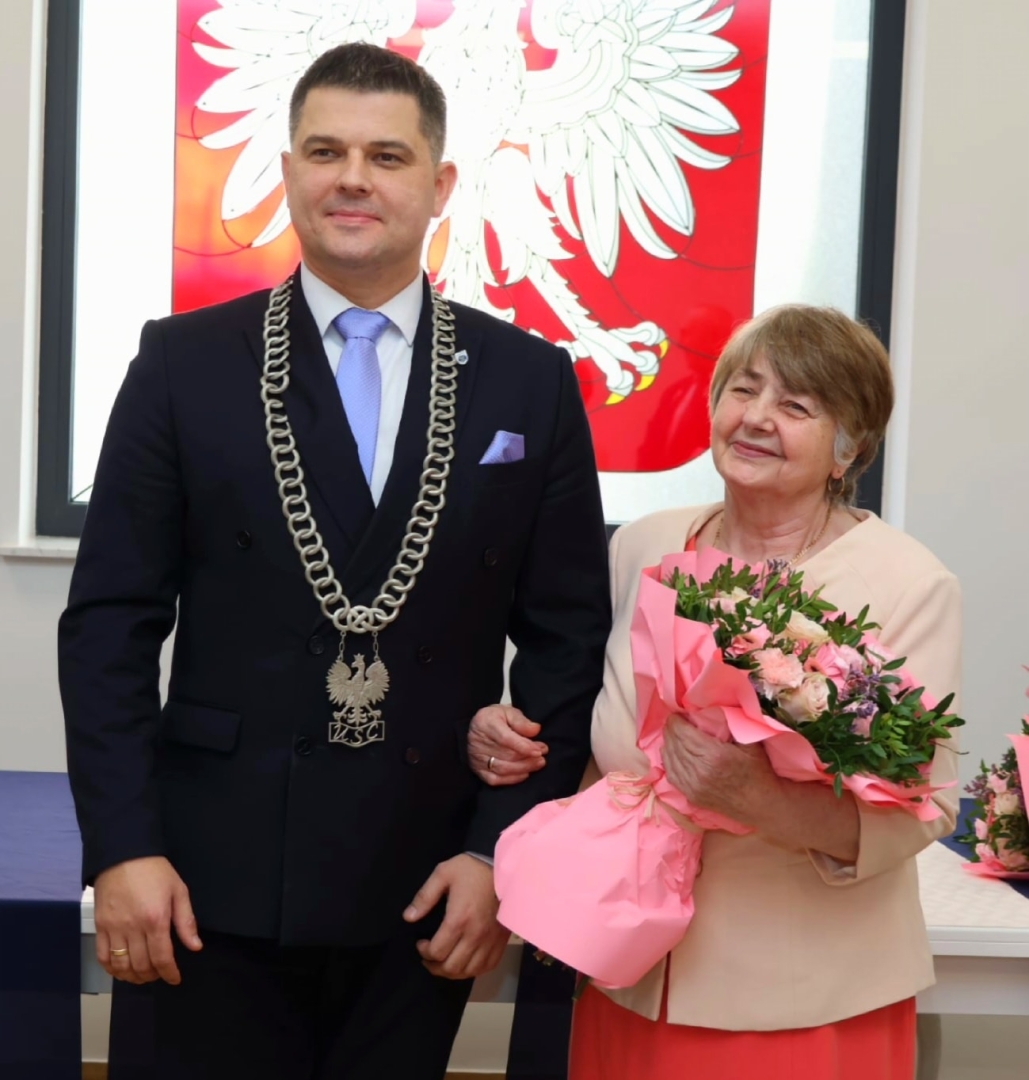 Burmistrz Kamieńska Jarosław Bąkowicz pogratulował Jubilatom imponującego jubileuszu 50-lecia małżeństwa. W imieniu Prezydenta Rzeczypospolitej Polskiej wręczył Medale za Długoletnie Pożycie Małżeńskie, a także listy gratulacyjne i okolicznościowe upominki.
